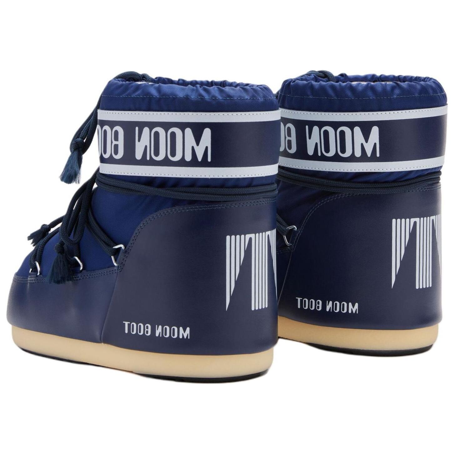 Зимние ботинки Moon Boot — узнаваемый силуэт с акцентом на практичность в непогоде и выразительную «луноходную» эстетику. Темно-синий нейлоновый верх смотрится аккуратно и современно, а толстая подошва с протектором добавляет устойчивости на мокрых и рыхлых покрытиях.