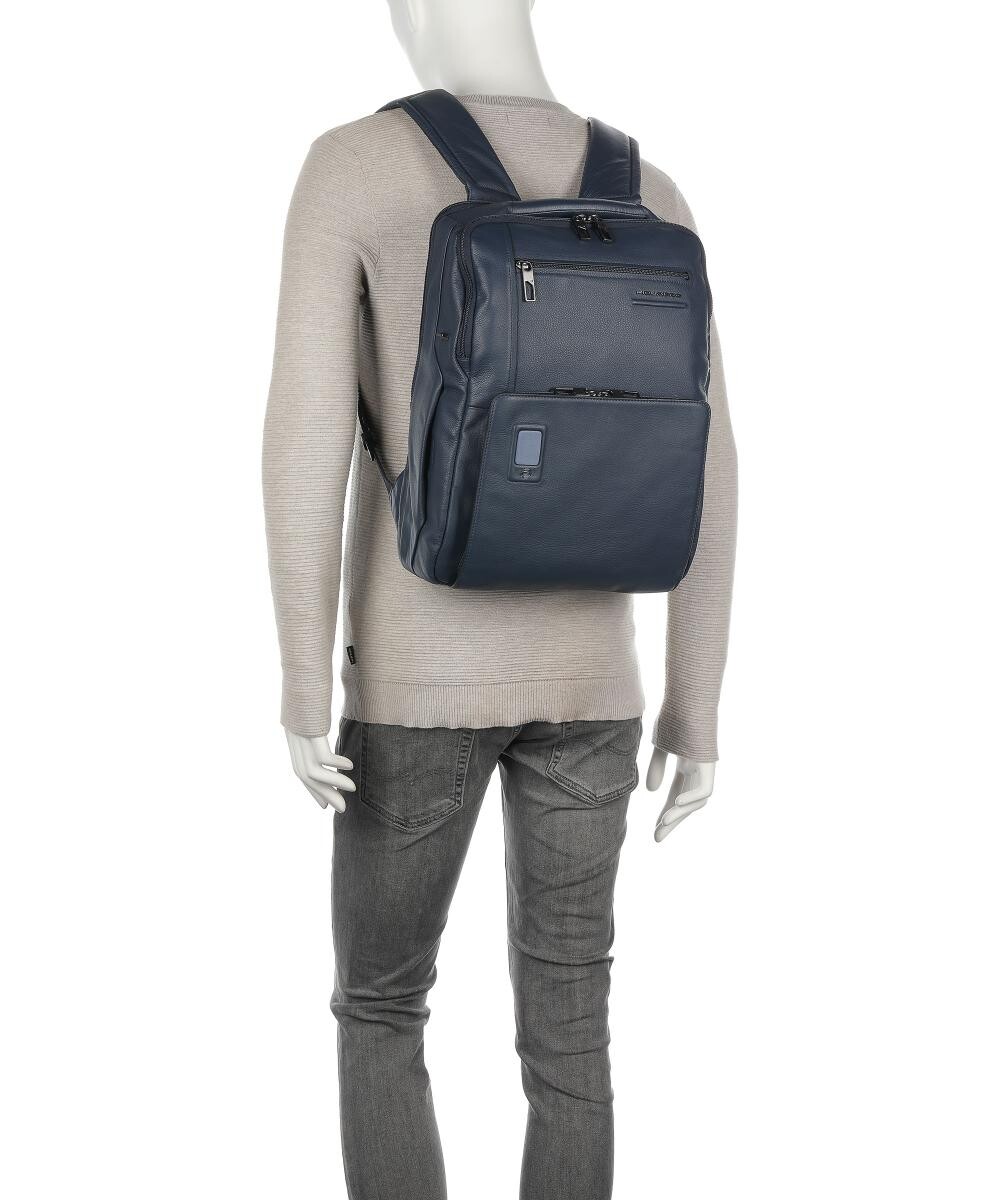 Рюкзак akron 14″ из зерненой кожи Piquadro, синий