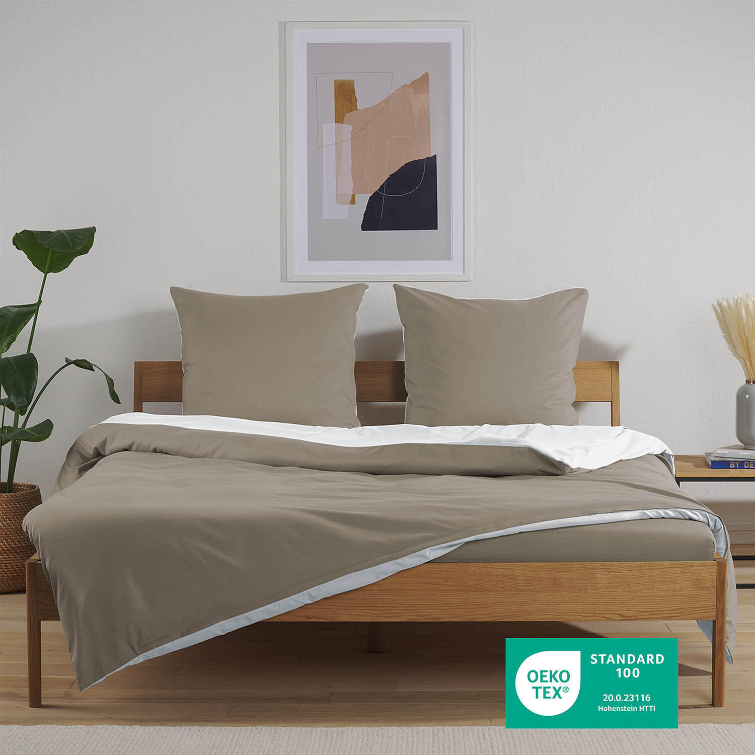 Двустороннее постельное белье Blumtal, 140x200 см, серо-коричневый/белый