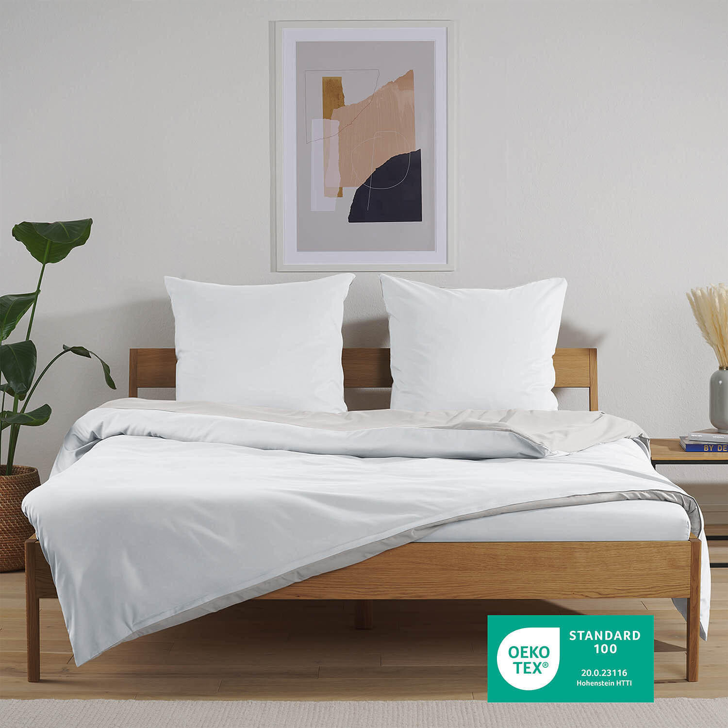 Двустороннее постельное белье Blumtal, 140x200 см, белый/светло-серый