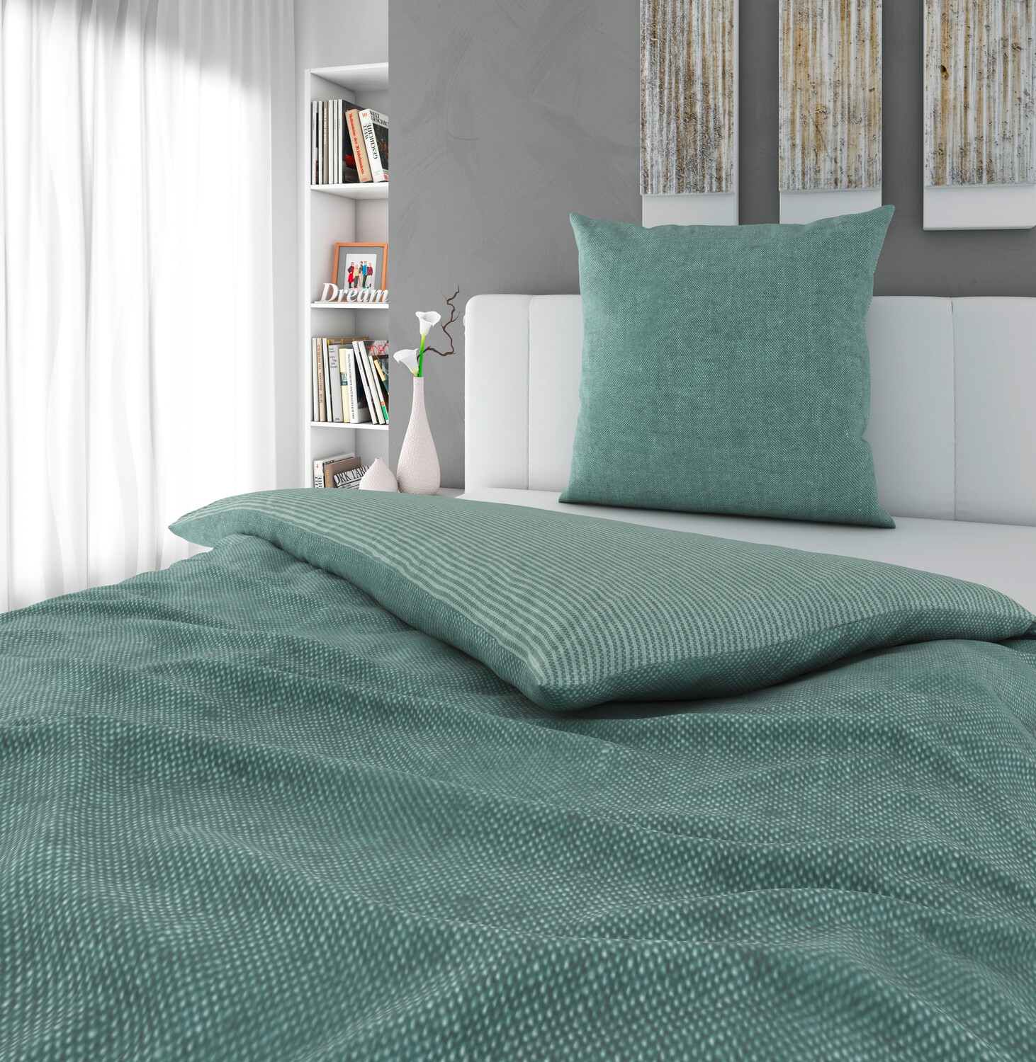 Двустороннее постельное белье Novel, 135x200 см, темно-зеленый