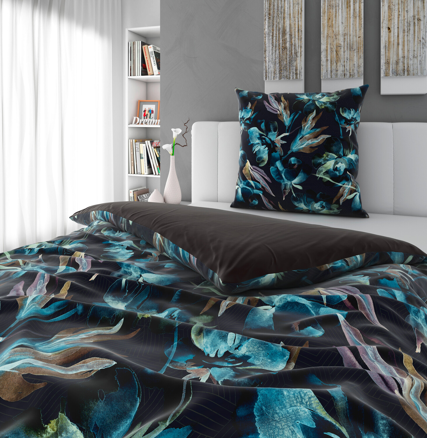 Двустороннее постельное белье Novel, 135x200 см, коричневый/бензин