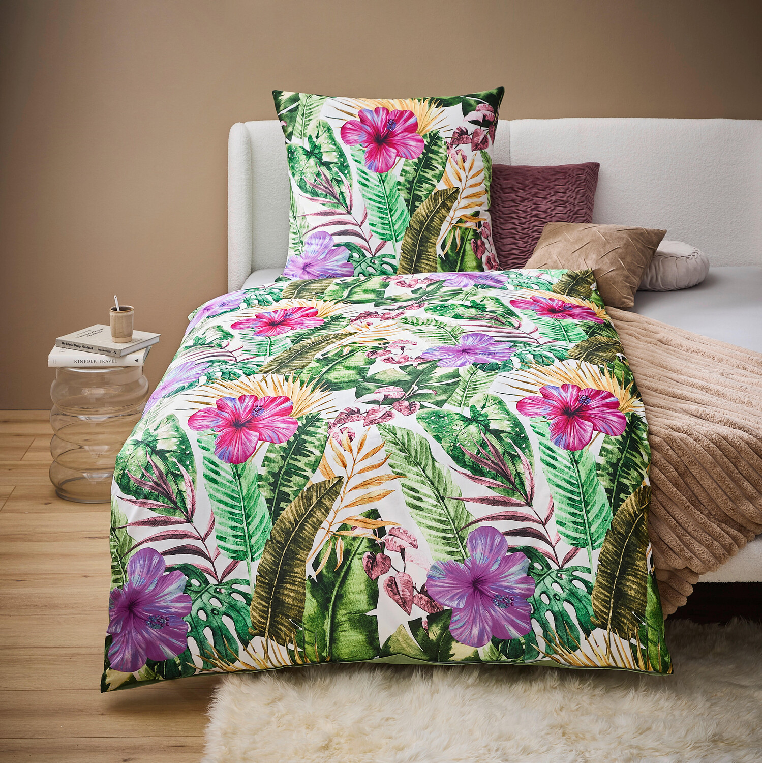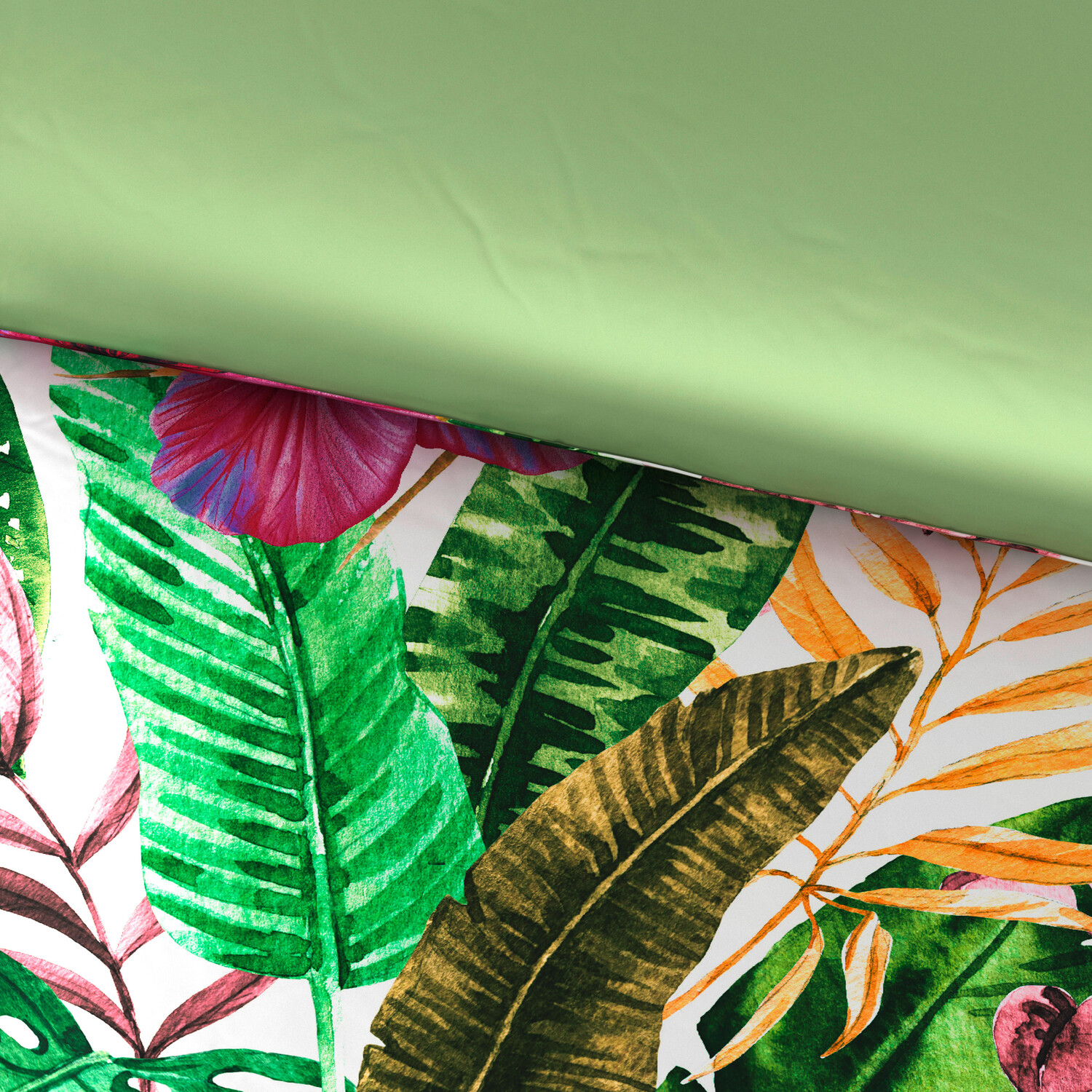 Двустороннее постельное белье Novel, 135x200 см, зеленый/розовый