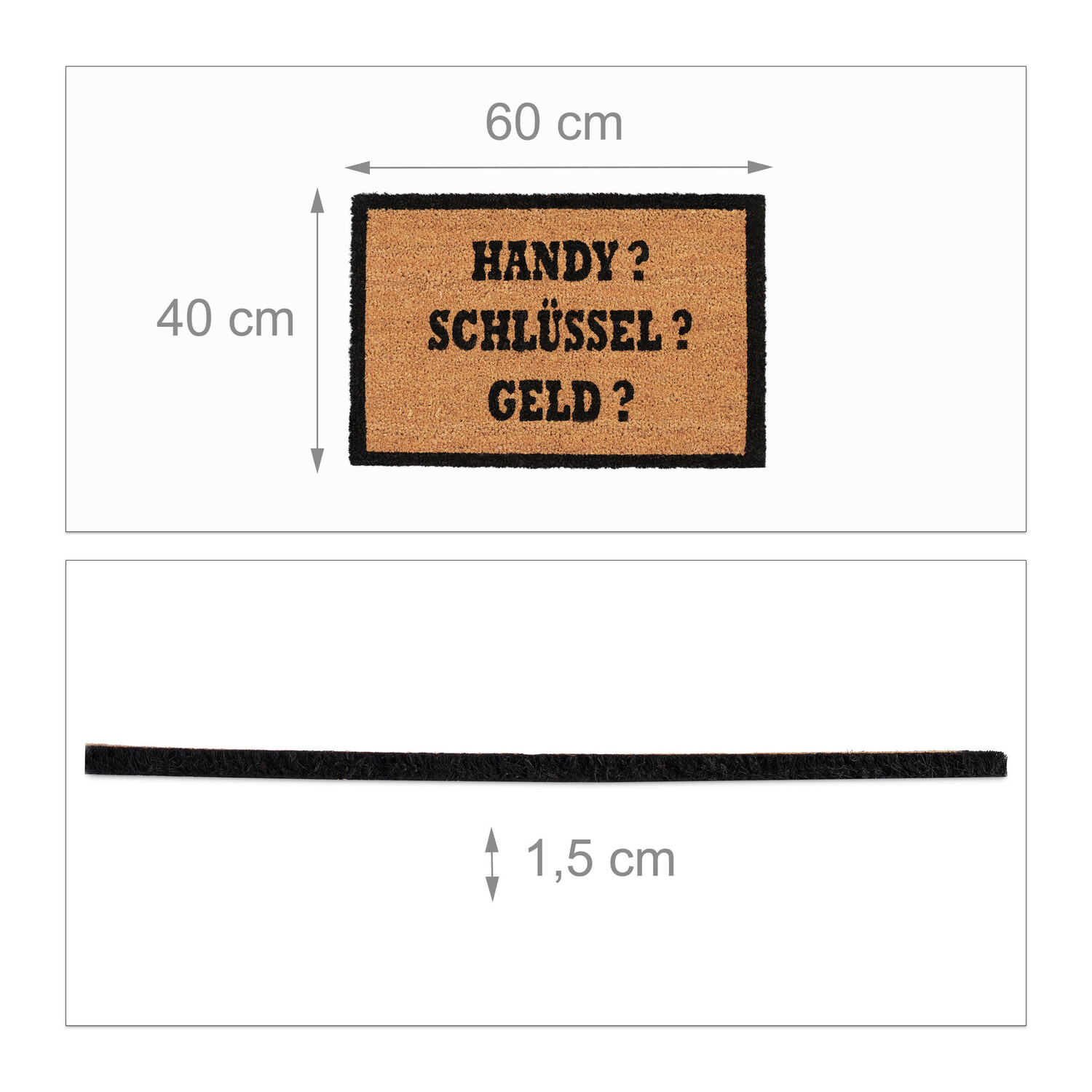 Особенности: Коврик-грязеуловитель из кокосового волокна Легко чистится чистый «Мобильный телефон? Ключи? Деньги?»- Противоскользящее покрытие с принтом Всепогодное и влагоотталкивающее