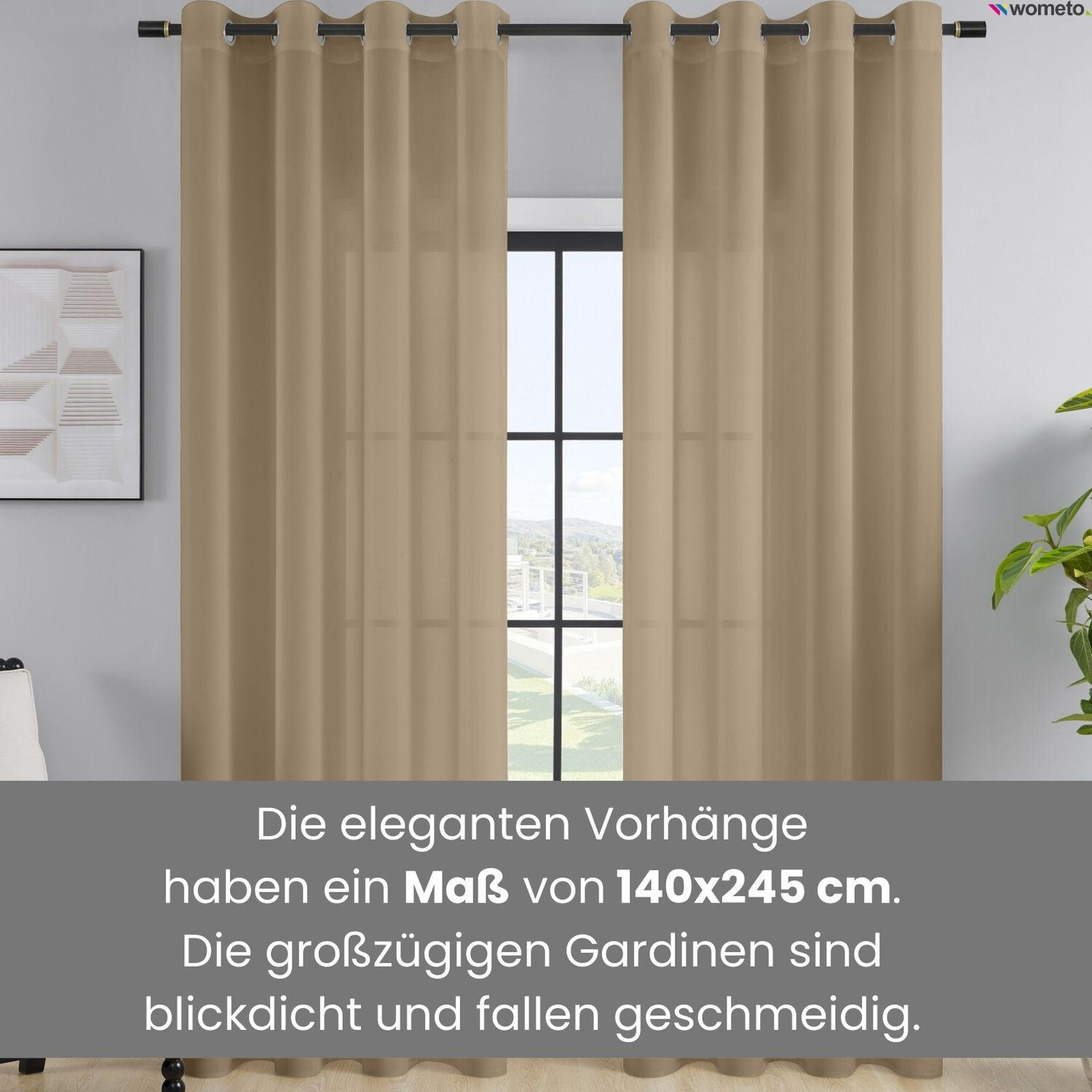 Штора wometo, 140x245 см, бежевый 3 145₽