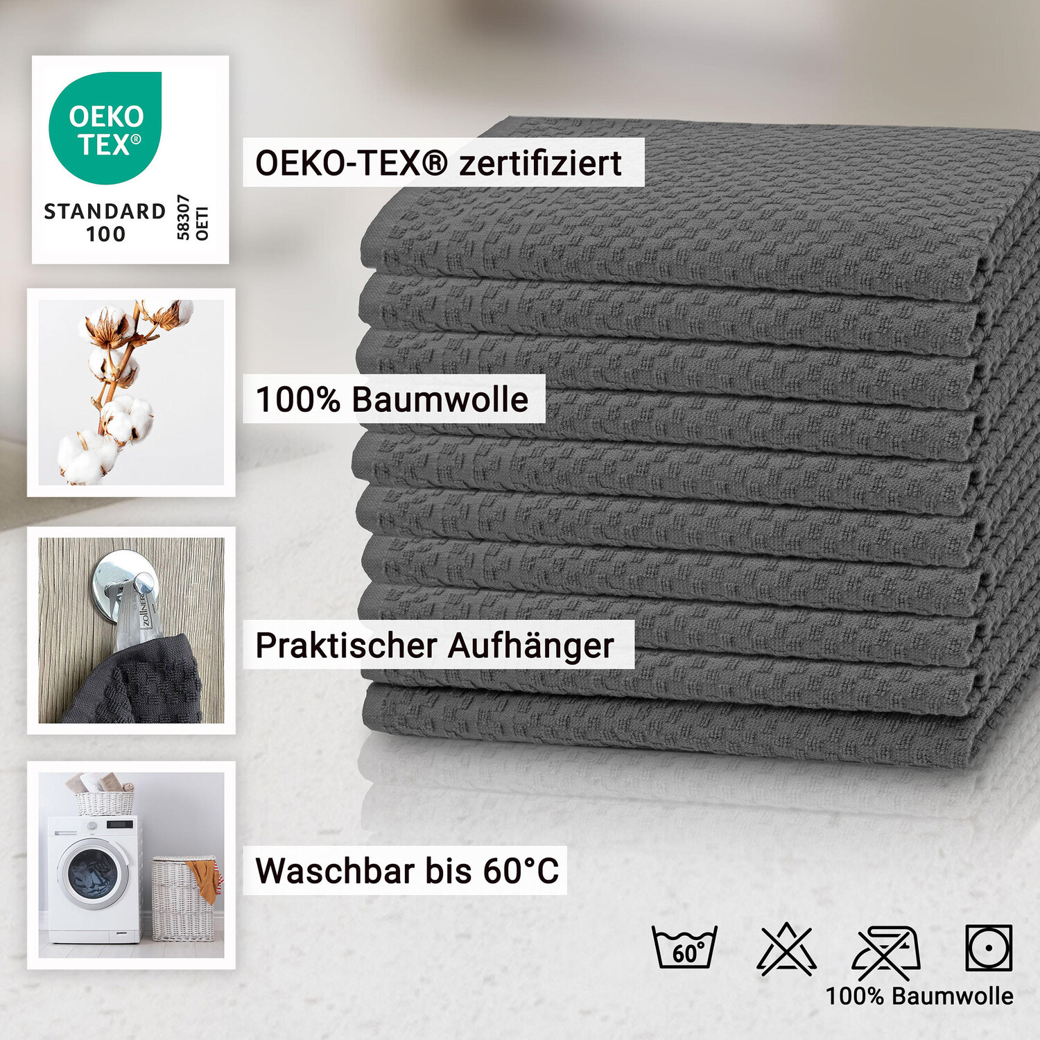 Чайные полотенца Zollner, 45x60 см, серо-коричневый