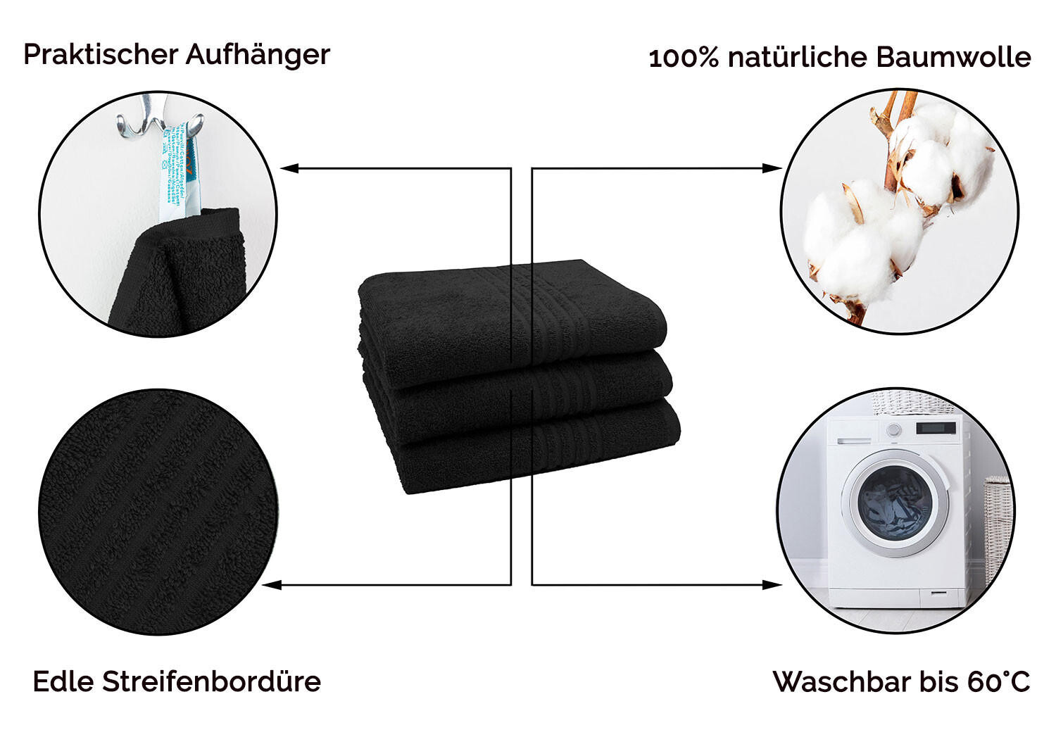 Полотенце Zollner, 50x100 см, черный