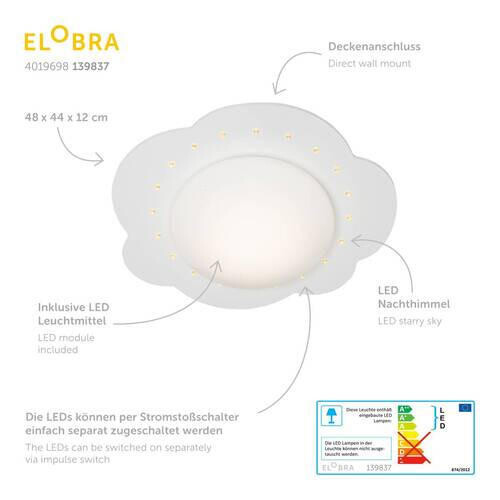 Детский потолочный светильник 48x12 см, белый