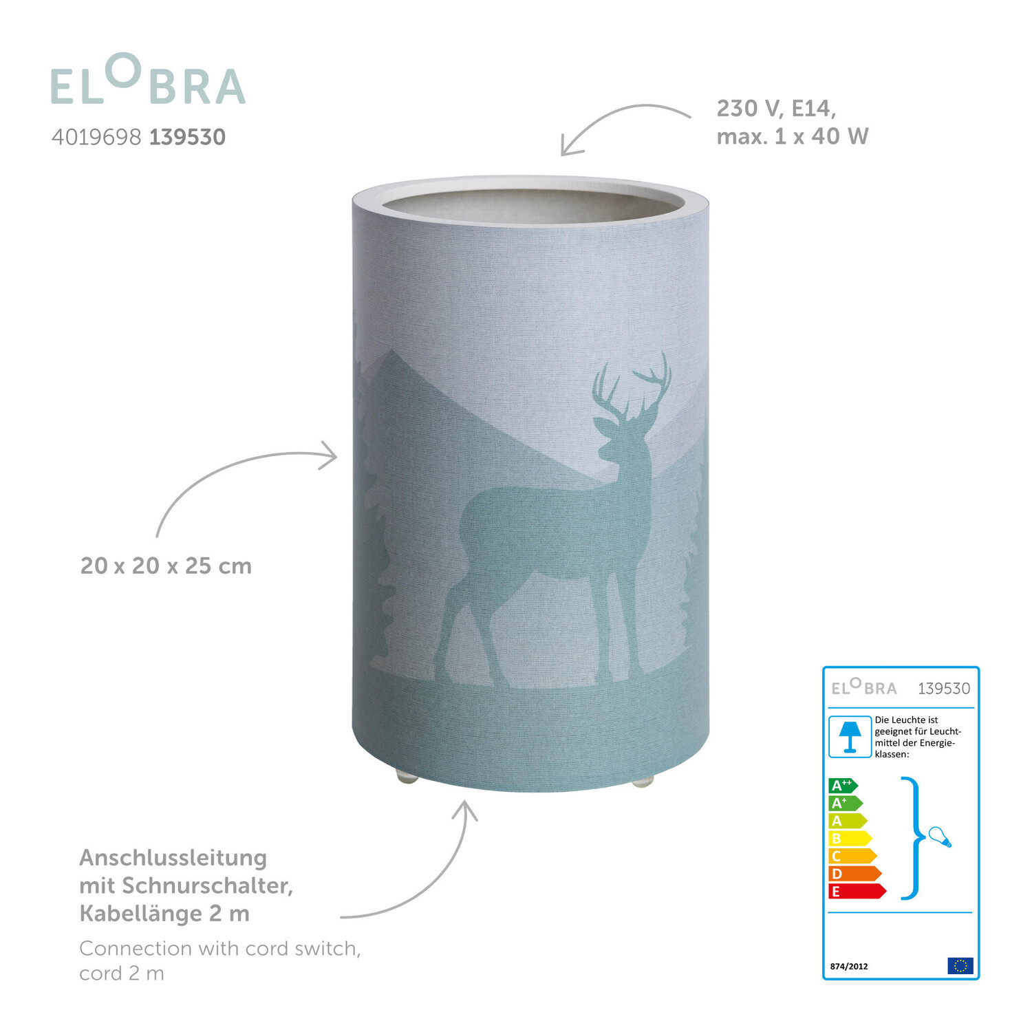 Детская настольная лампа 20x25 см, зеленый