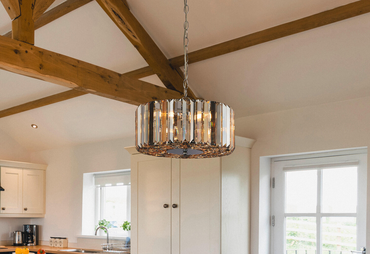 Подвесной светильник 35x136 см, хром/янтарь