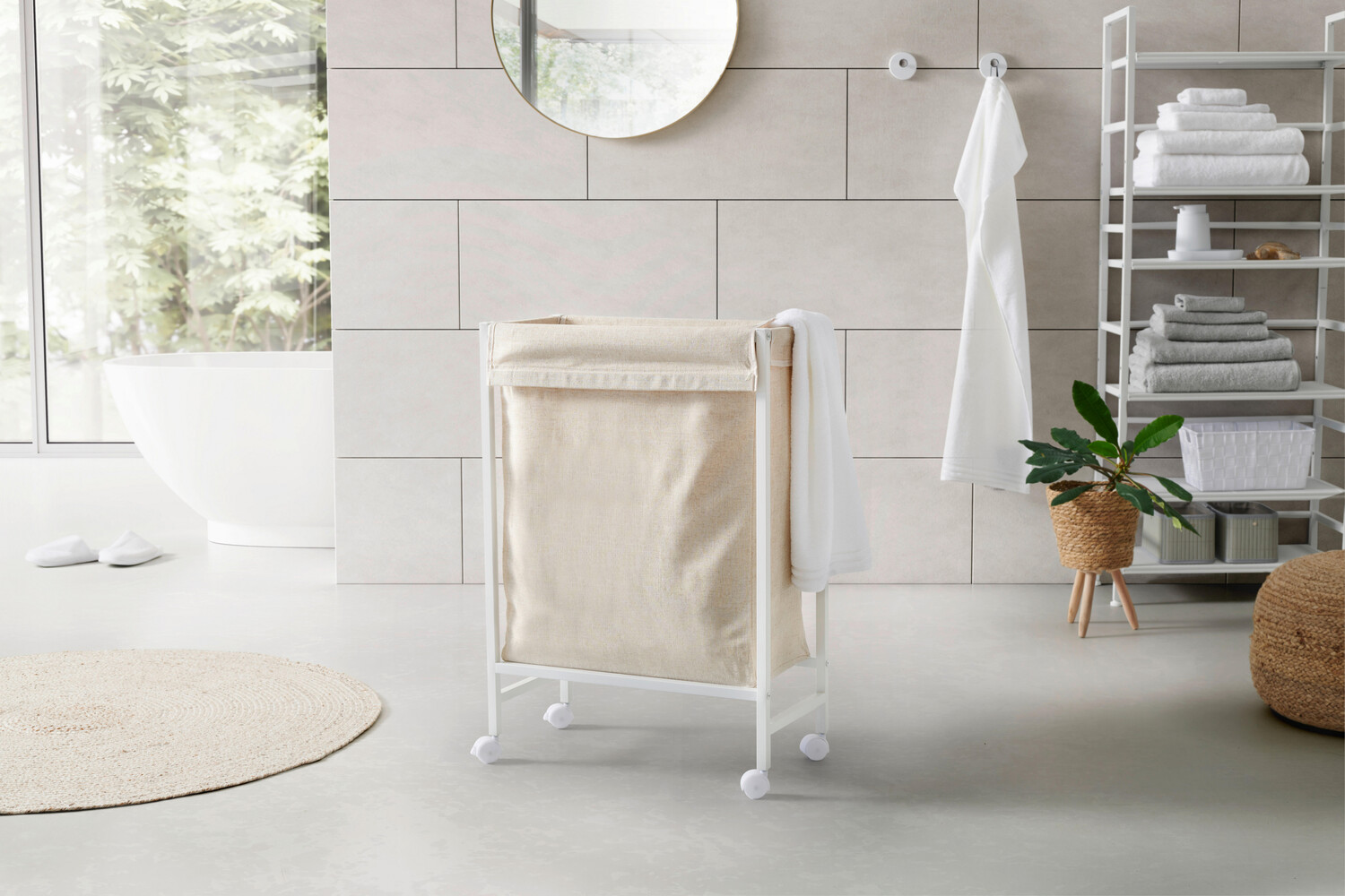 Корзина для белья 56x78x29 см, белый/бежевый