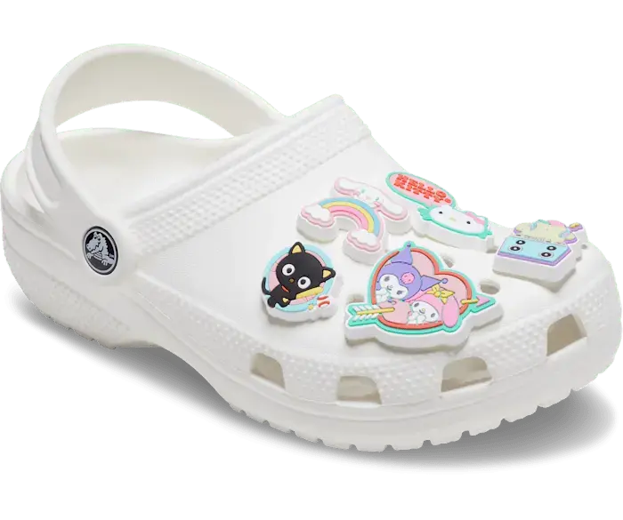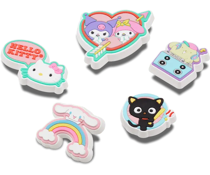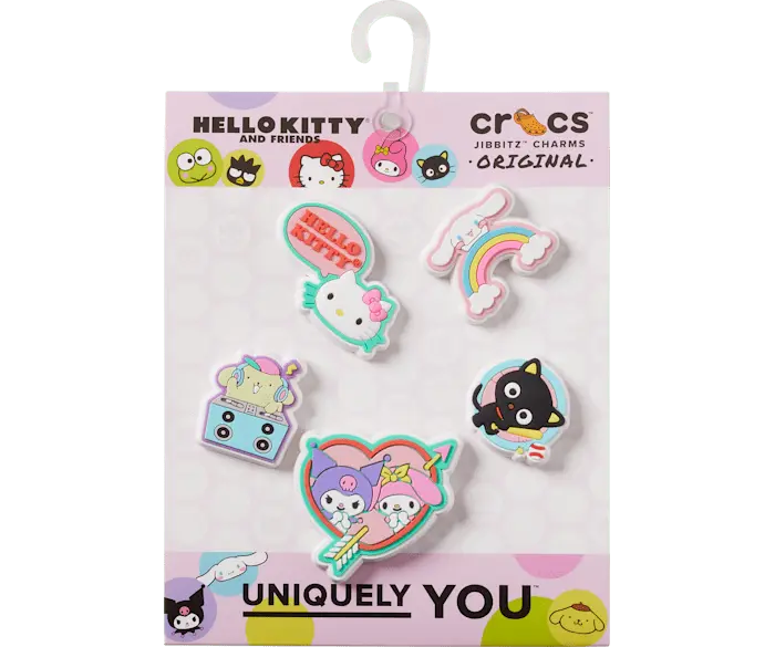 Придайте своей обуви немного индивидуальности с помощью этих подвесок Hello Kitty Jibbitz из пяти штук. Они станут идеальным дополнением к вашим любимым парам сабо, шлепанцев и многого другого. © 2023 SANRIO CO., используется по лицензии. Не игрушка. Не предназначен для детей до 3 лет.