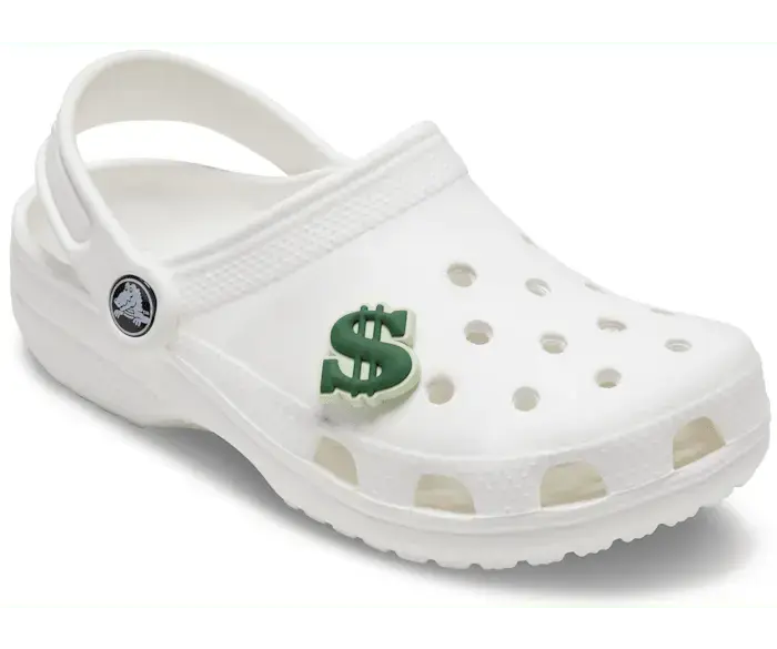 Этот брелок Jibbitz в виде знака доллара заставит ваших друзей позеленеть от зависти. Проявите немного настроения и потратьте немного денег на сабо или шлепанцы Crocs уже сегодня!