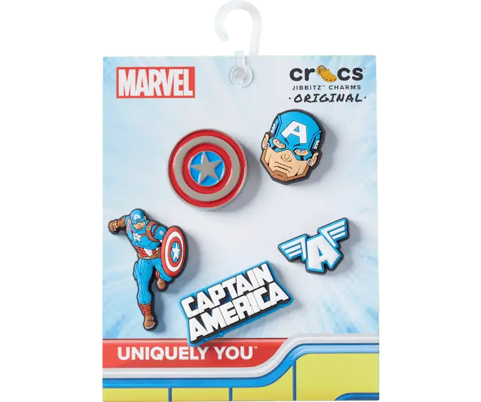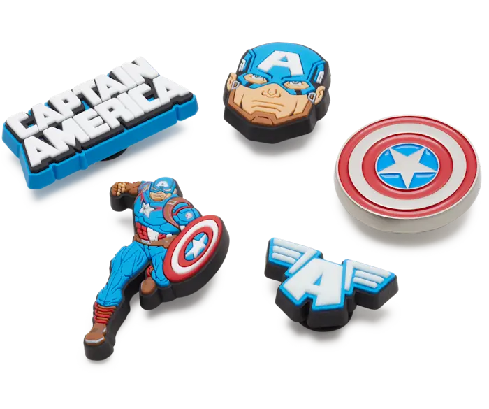 Придайте себе немного индивидуальности с помощью этих Капитанов Америки Набор из 5 брелоков Jibbitz. Они станут идеальным дополнением к вашим любимым сабо, шлепанцам и т. д.