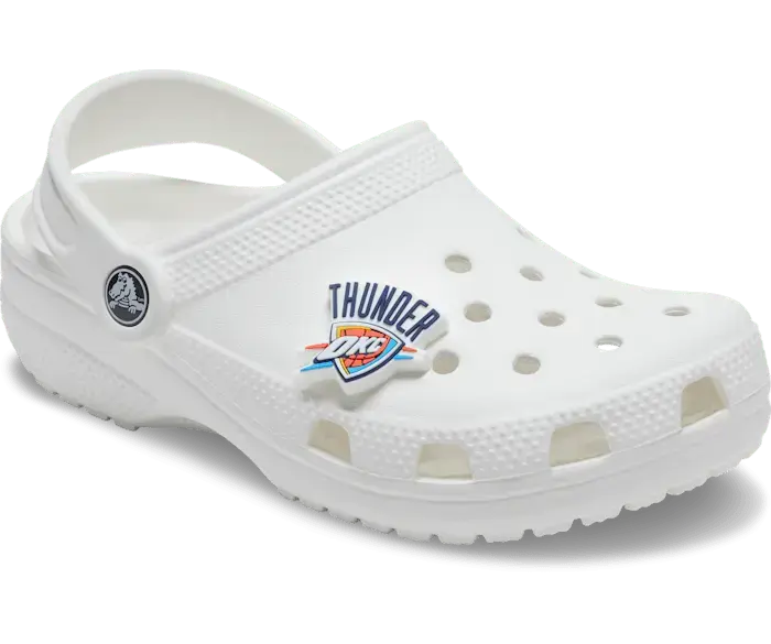 Придайте своей обуви индивидуальность с помощью подвесок NBA OKC Thunder Jibbitz. Это идеальное дополнение к вашим любимым сабо, шлепанцам и т. д.