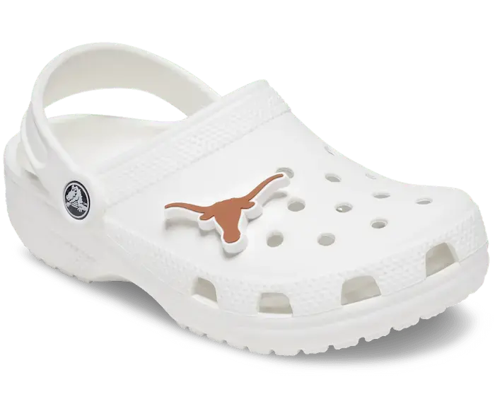 Придайте своей обуви немного индивидуальности с помощью этой подвески Jibbitz от Техасского университета. Это идеальное дополнение к вашим любимым сабо, шлепанцам и т. д.