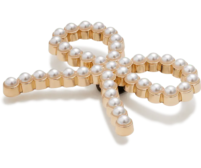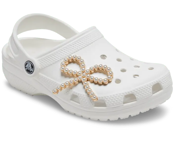 Придайте своей обуви индивидуальности с помощью этой подвески Pearl Bow Jibbitz. Это идеальное дополнение к вашим любимым сабо, шлепанцам и т. д.