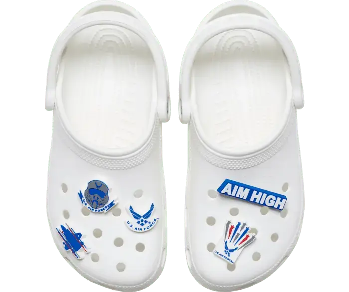 Придайте своей обуви немного индивидуальности с помощью этих подвесок Jibbitz Вооруженных сил США, ВВС США, 5 шт. Они станут идеальным дополнением к вашим любимым сабо, шлепанцам и т. д.