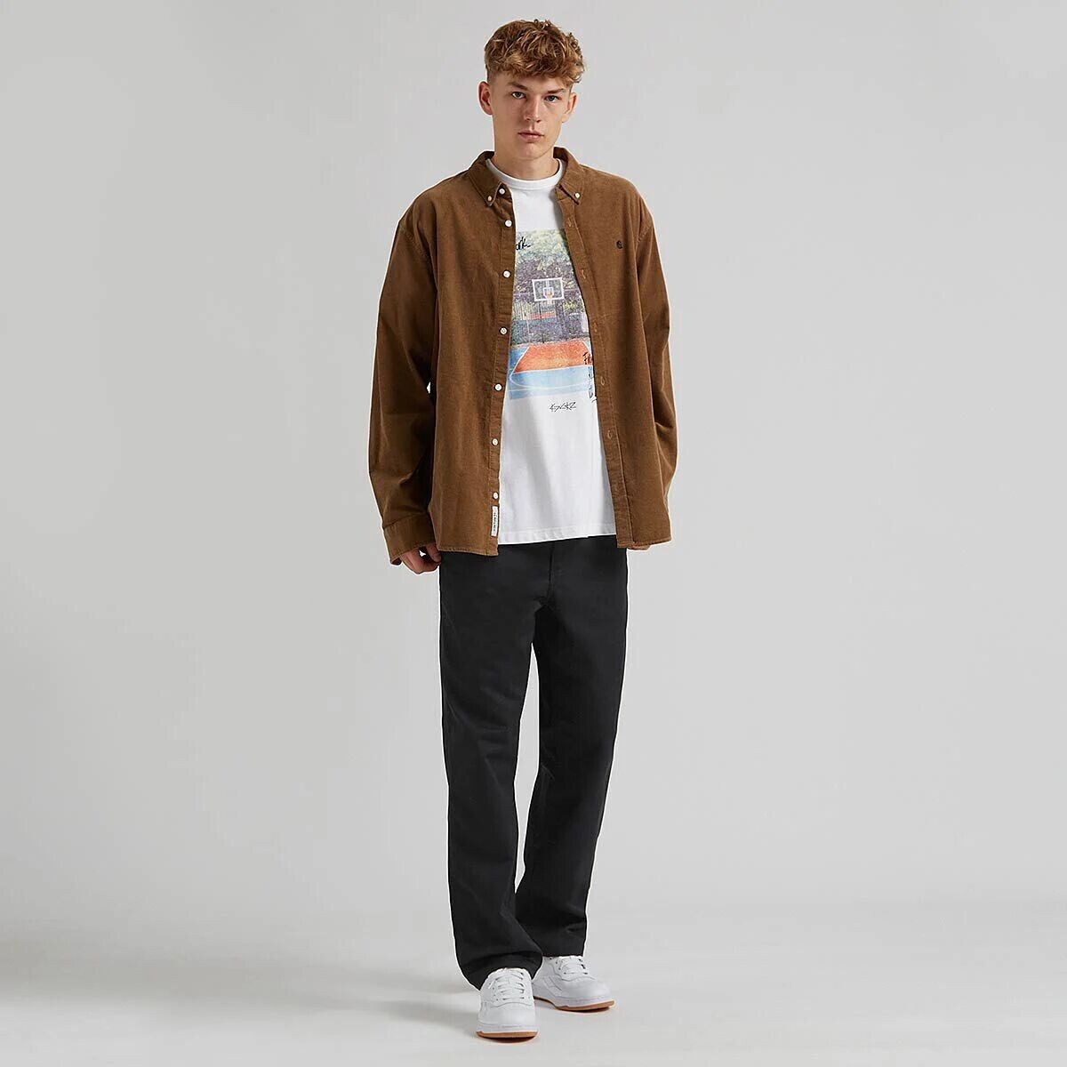Вдохновением для создания брюк Simple Pant от Carhartt послужила классическая рабочая одежда. Свободный крой дополнен накладными карманами и тройными швами. На ширинке имеется молния. Образ дополняет квадратная бирка Carhartt на спине брюк.