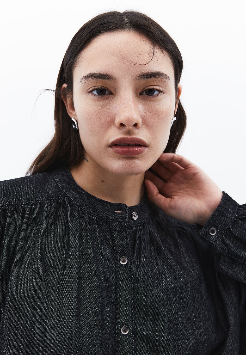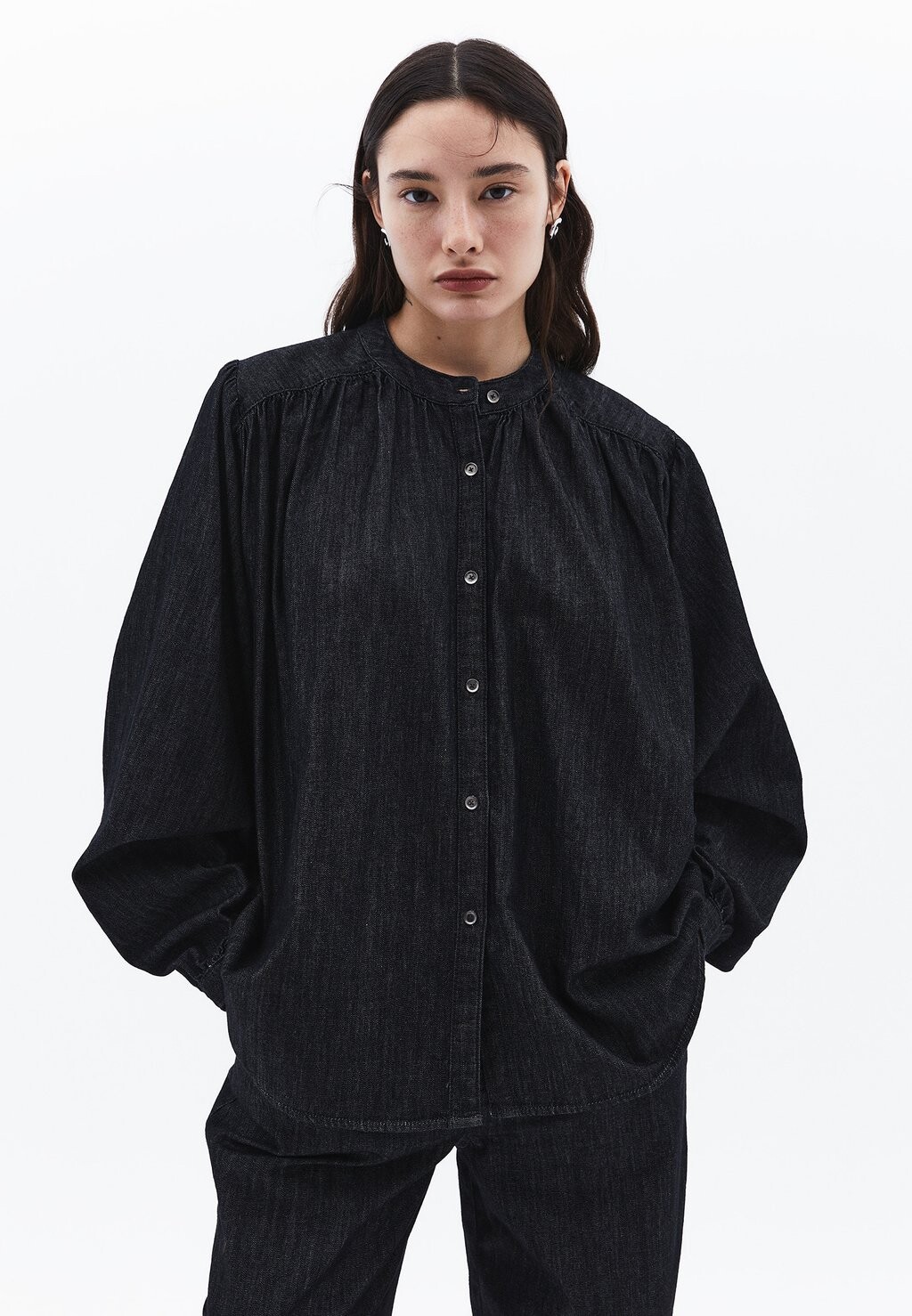 Блузка на пуговицах MIT BALLONÄRMELN OXXO, черный деним