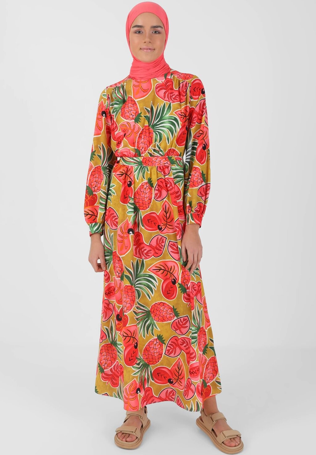 Платье макси CREW NECK MODEST BENIN Modanisa, мультиколор