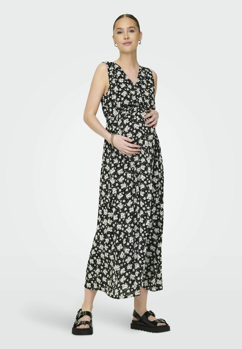 Платье макси NORMAL GESCHNITTEN V-AUSSCHNITT ONLY MATERNITY, черный