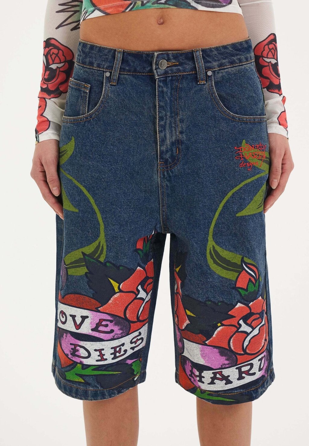 Джинсовые шорты CHERRY LOVE BOMB Ed Hardy, синий деним