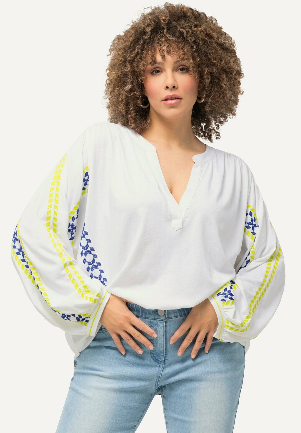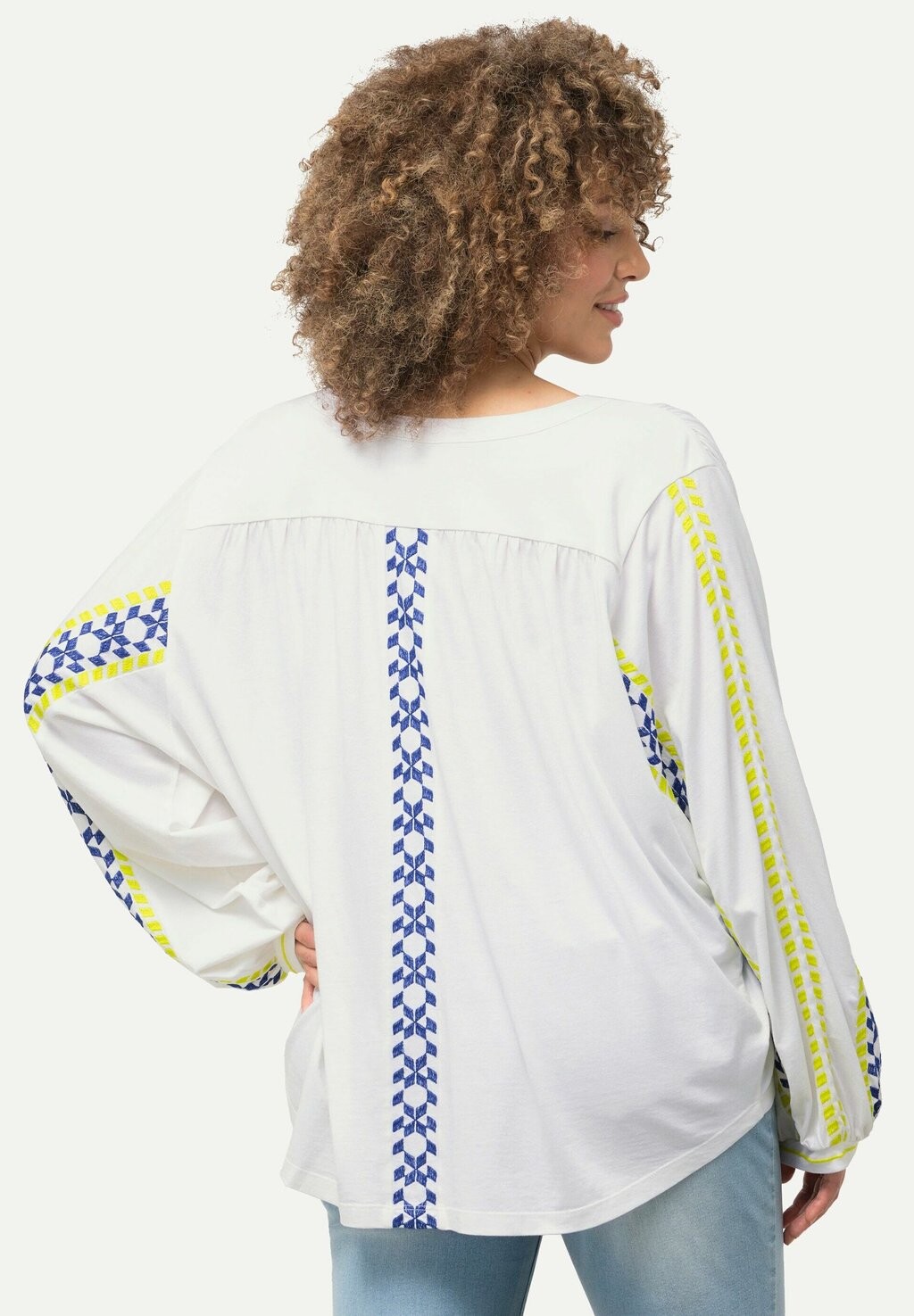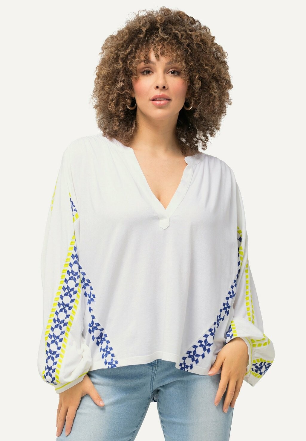 Блуза STRIPE DETAIL LONG SLEEVE Ulla Popken, белый