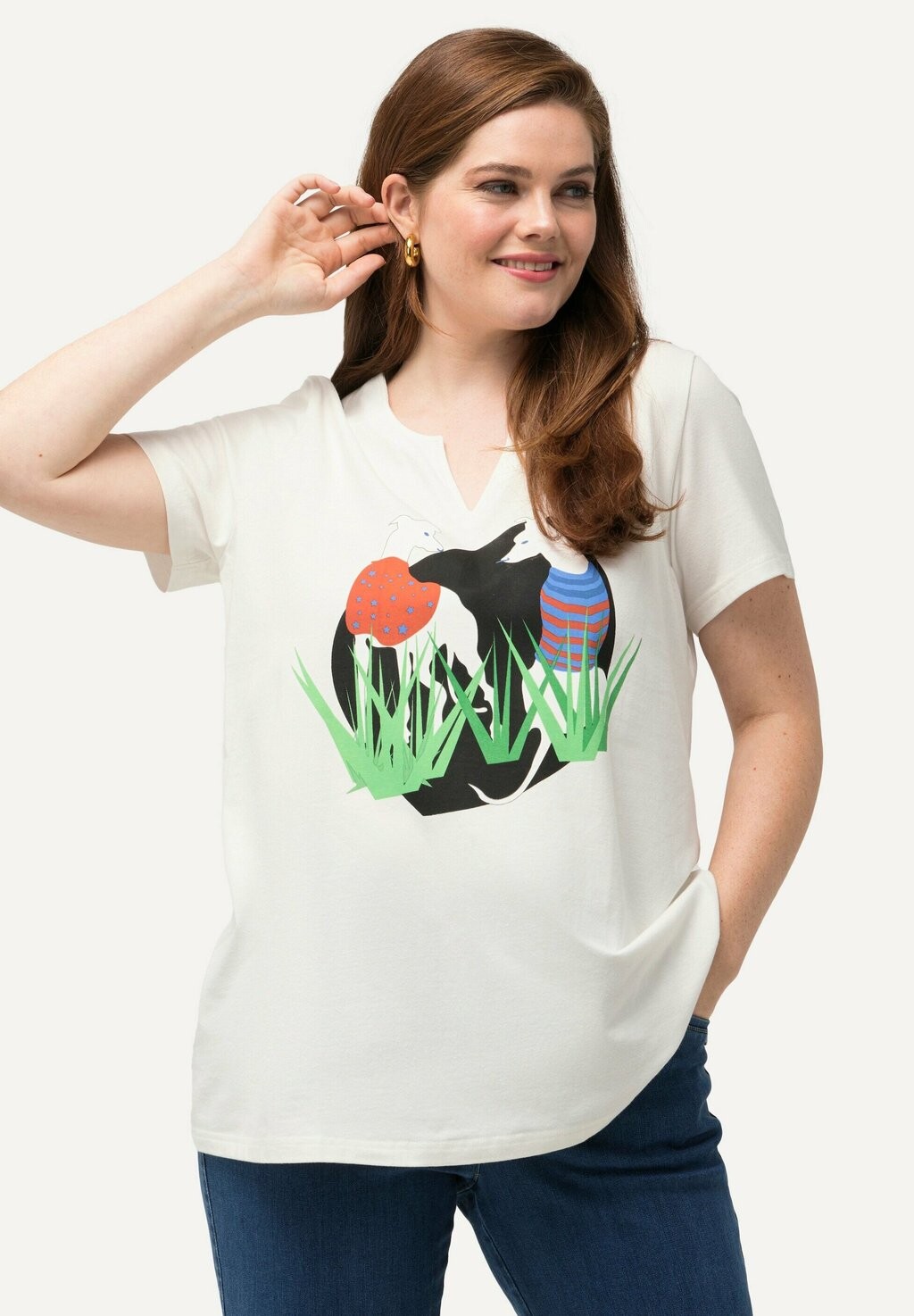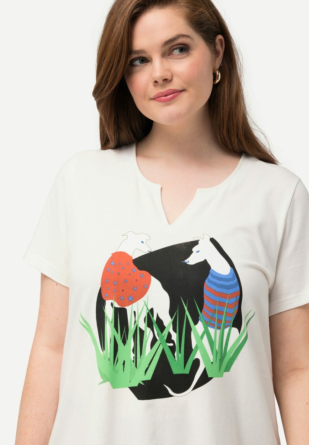 Футболка с принтом DOG SHORT SLEEVE SPLIT NECK GRAPHIC Ulla Popken, белый