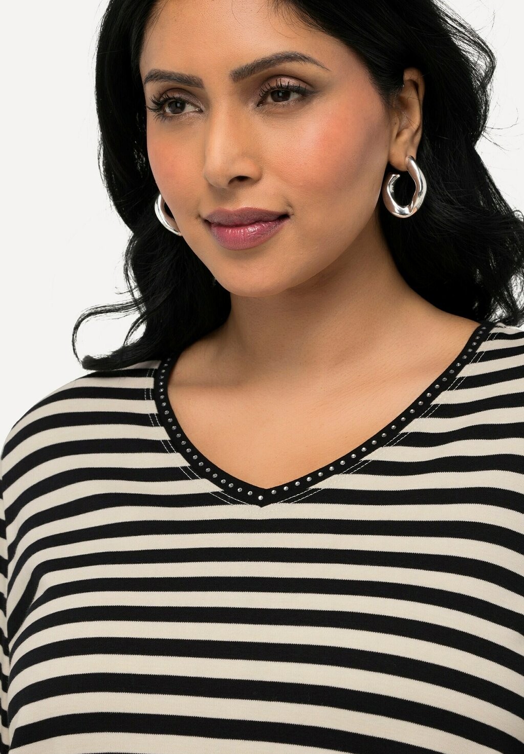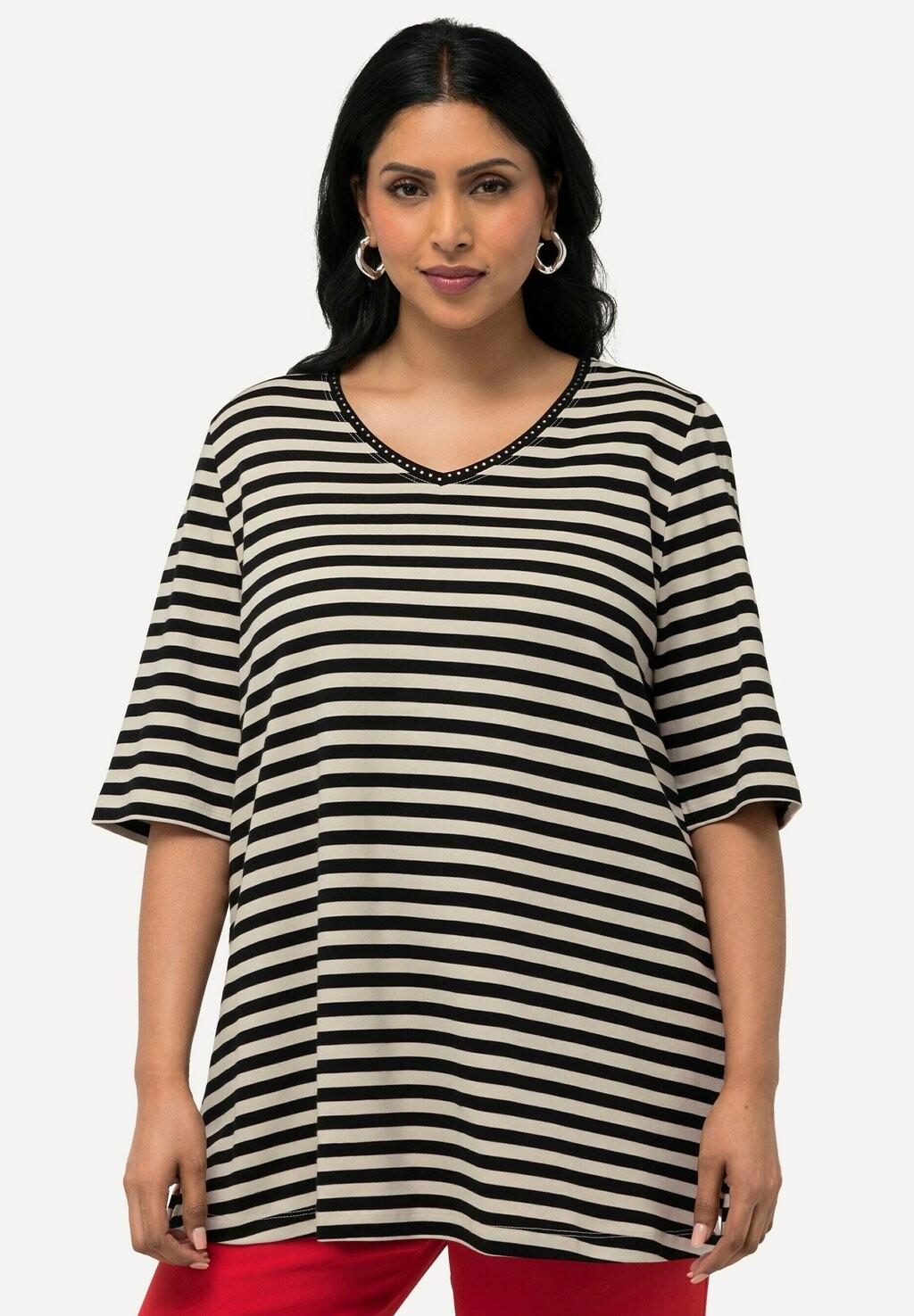 Футболка с принтом STRIPED SHORT SLEEVE PIMA  Ulla Popken, черный