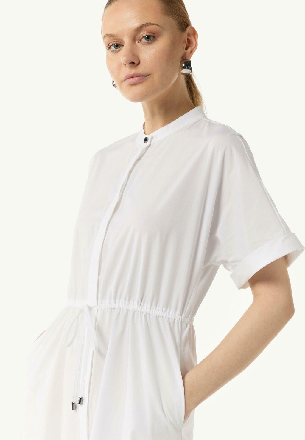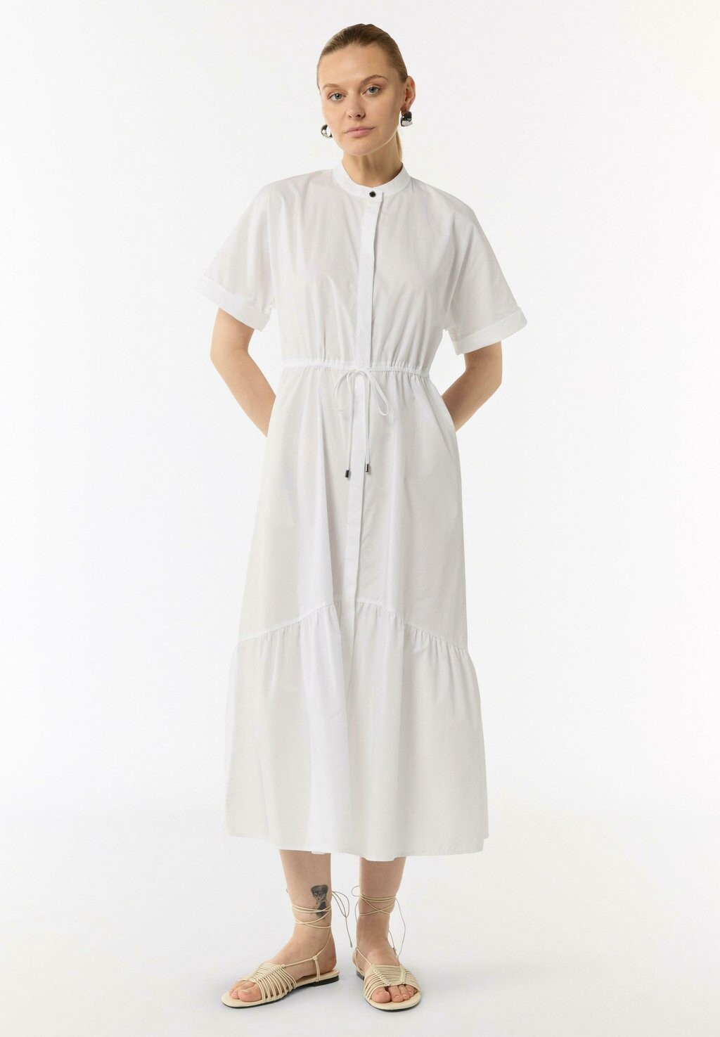 Платье-рубашка LEICHT TRANSPARENTES MIDI MIT EINGRIFFTASCHEN IN TAILLIERTER PASSFORM comma, белый