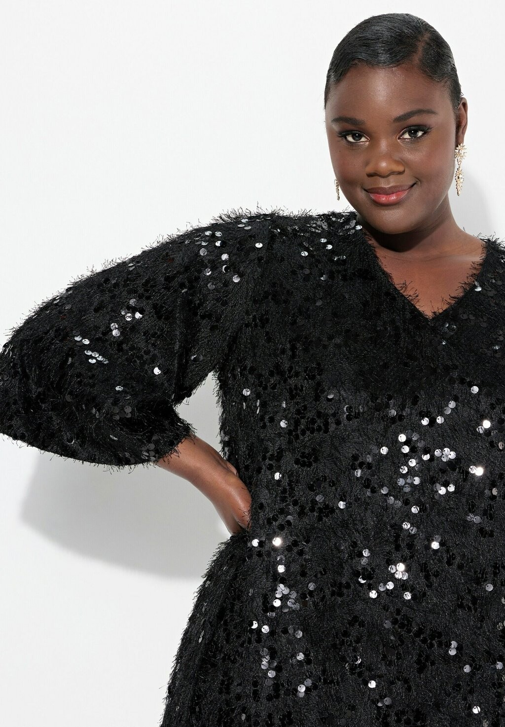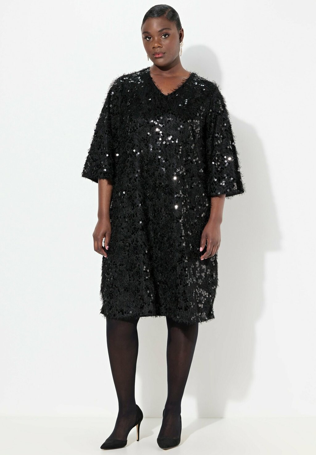 Коктейльное платье / Вечернее платье FRINGED SEQUINED SHORT SLEEVE Ulla Popken, черный