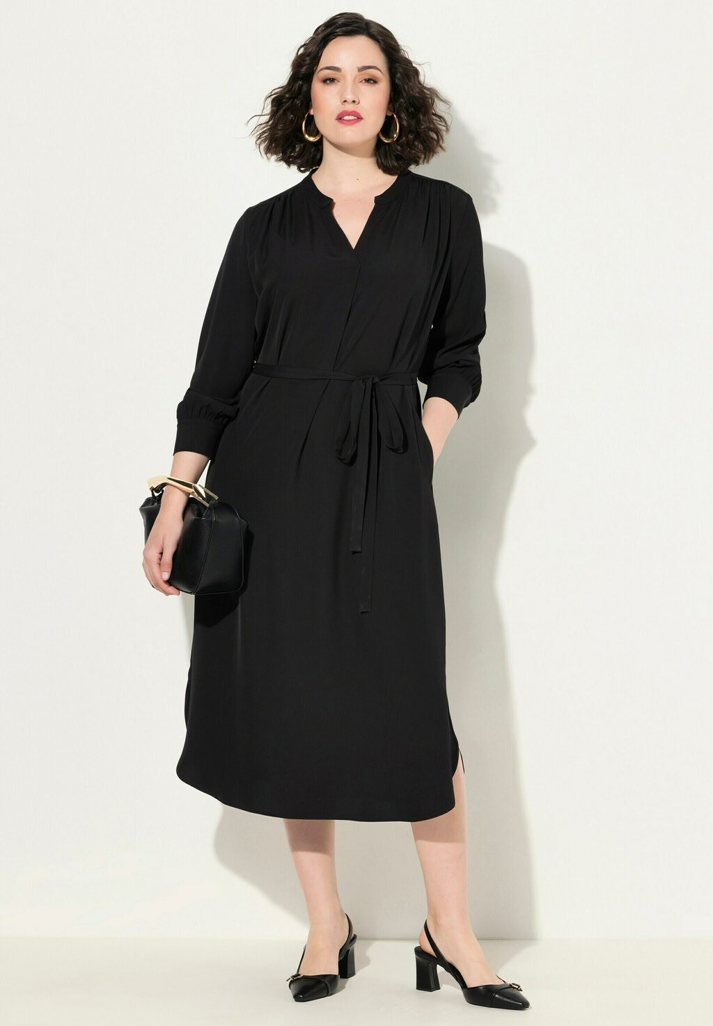 Дневное платье BELTED LONG SLEEVE MIDI Ulla Popken, черный