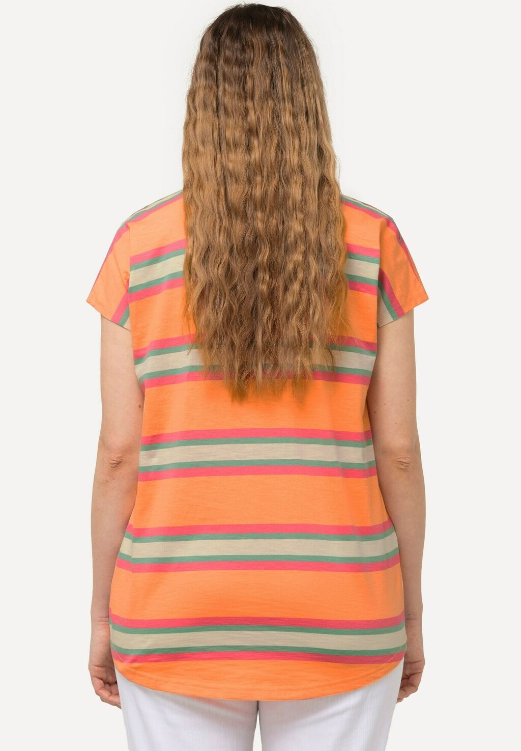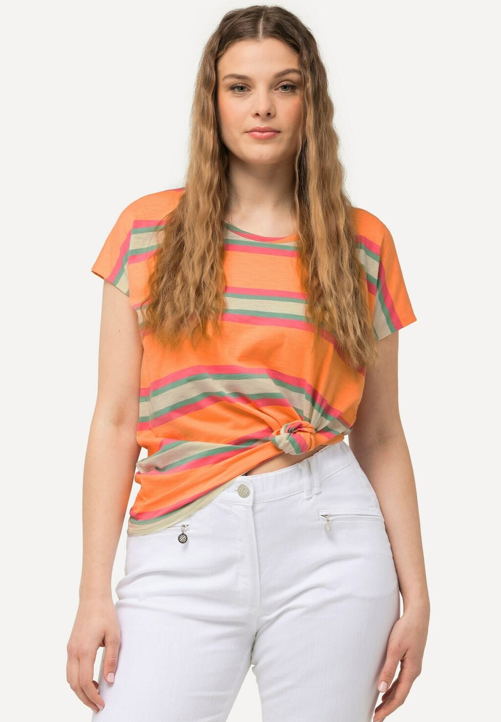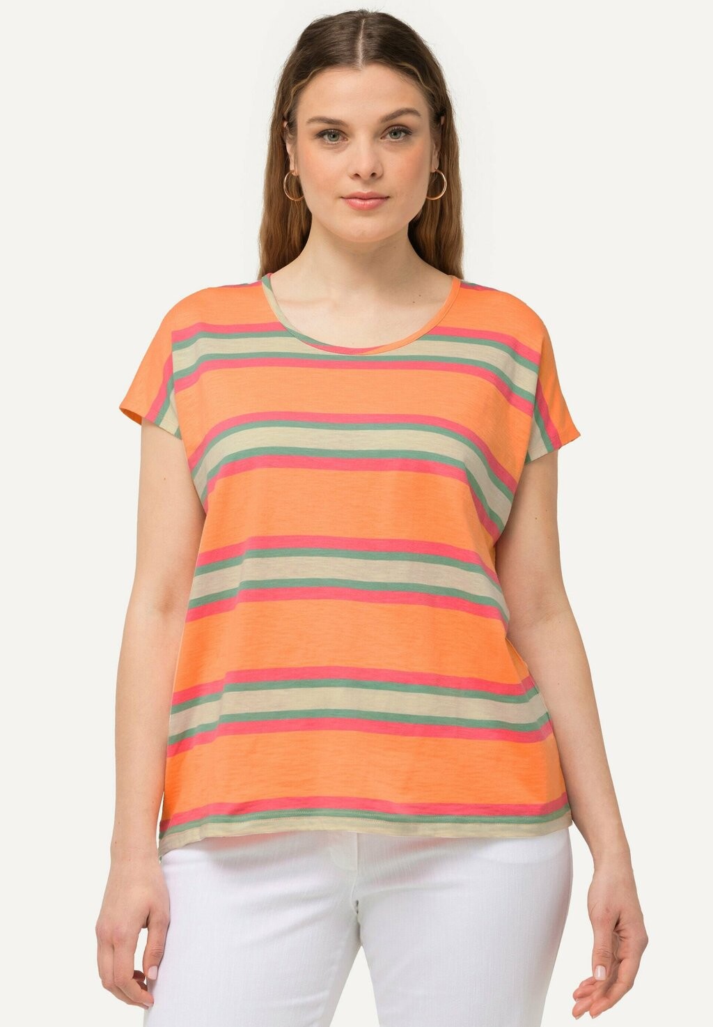 Футболка с принтом MIXED STRIPE SLEEVE Ulla Popken, абрикос