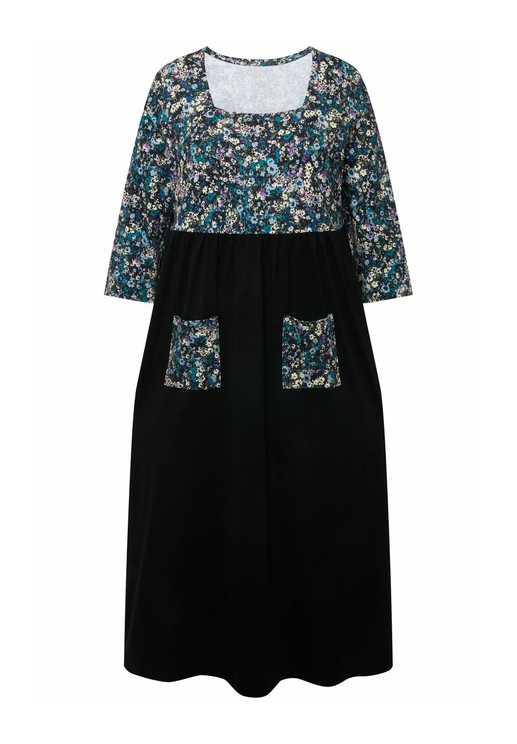 Платье из джерси FLORAL PANEL 3/4 SLEEVE SQUARE NECK Ulla Popken, черный 9 411₽