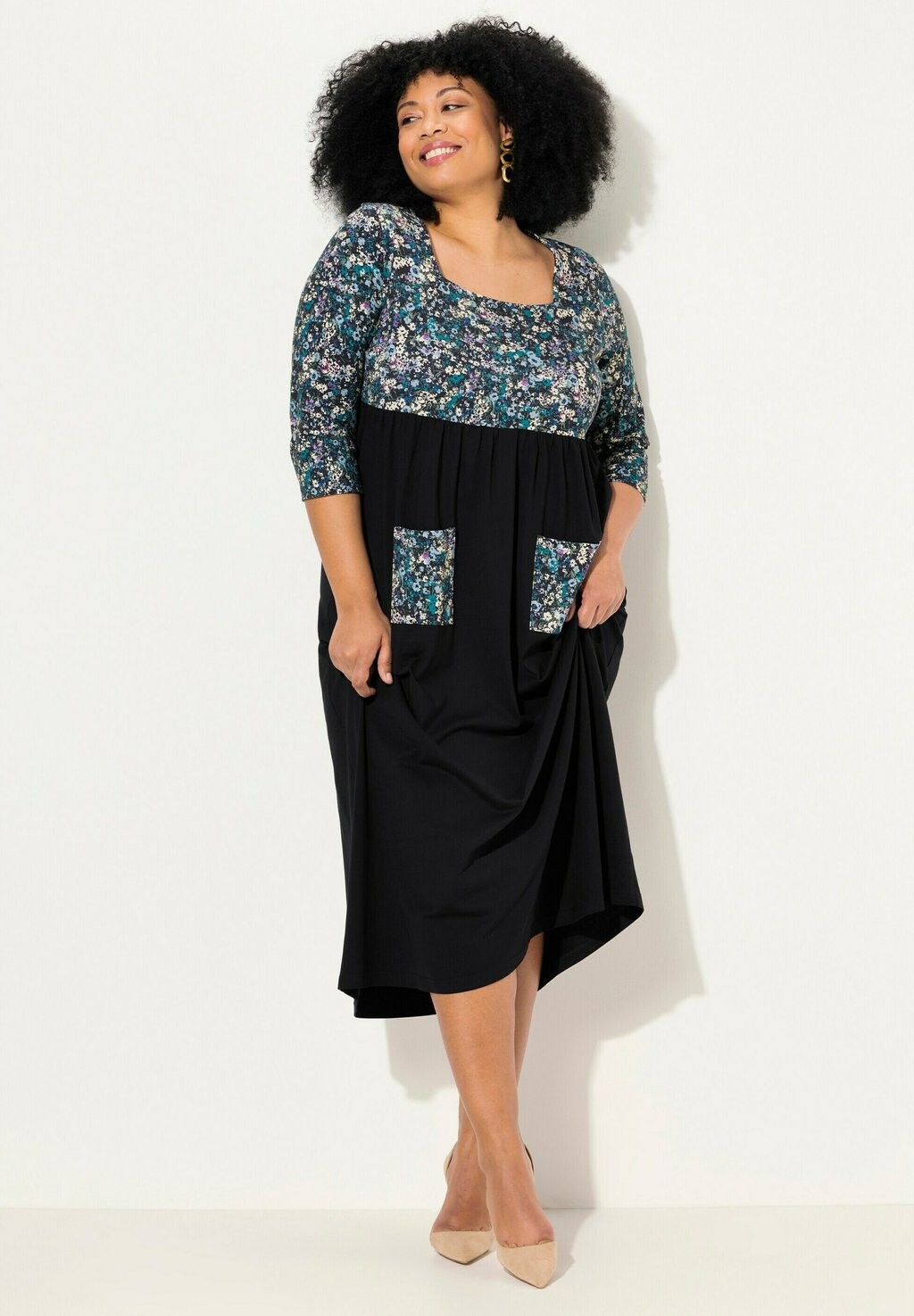 Платье из джерси FLORAL PANEL 3/4 SLEEVE SQUARE NECK Ulla Popken, черный