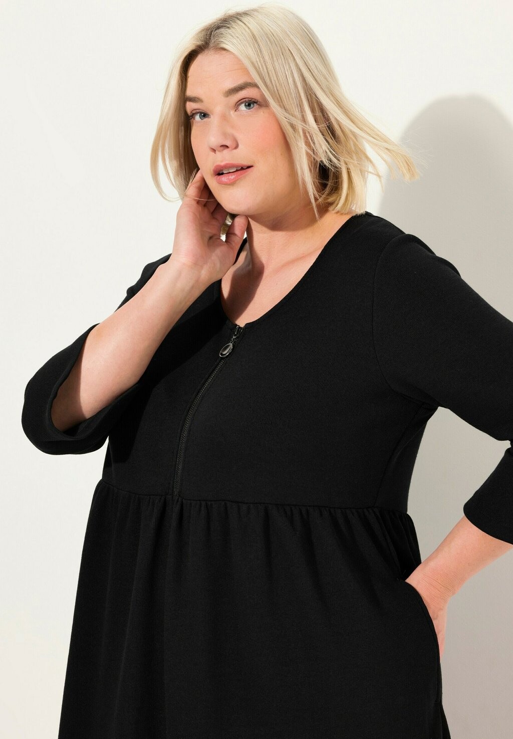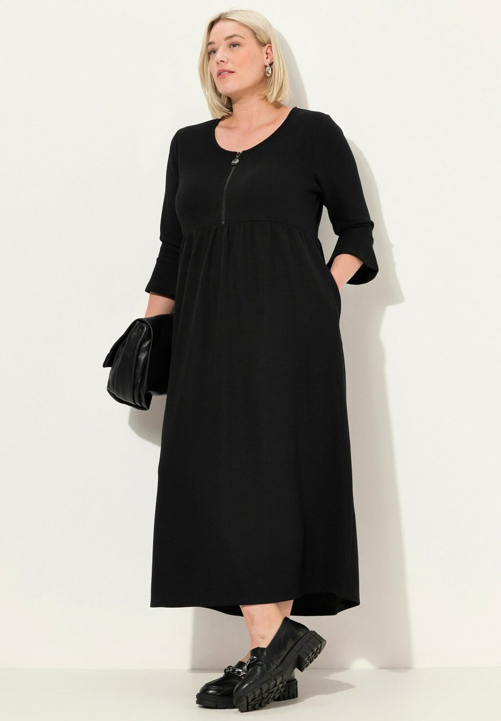 Платье из джерси ZIP FRONT 3/4 SLEEVE Ulla Popken, черный