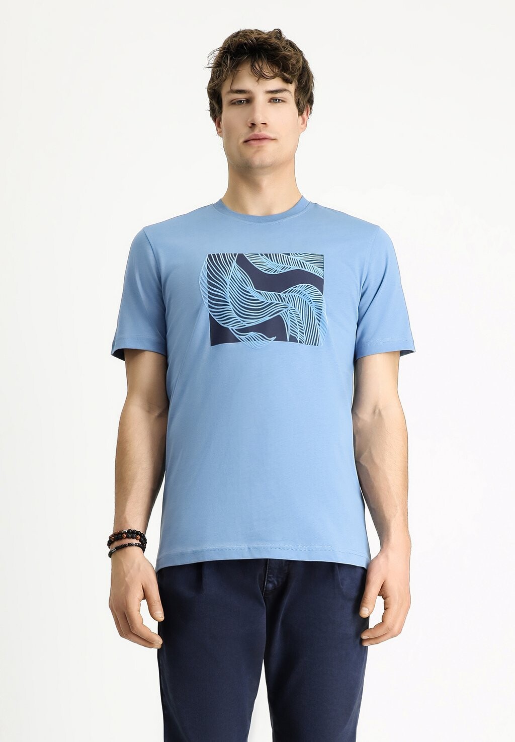 Футболка с принтом RUNDHALSAUSSCHNITT Kigili, неоновый синий