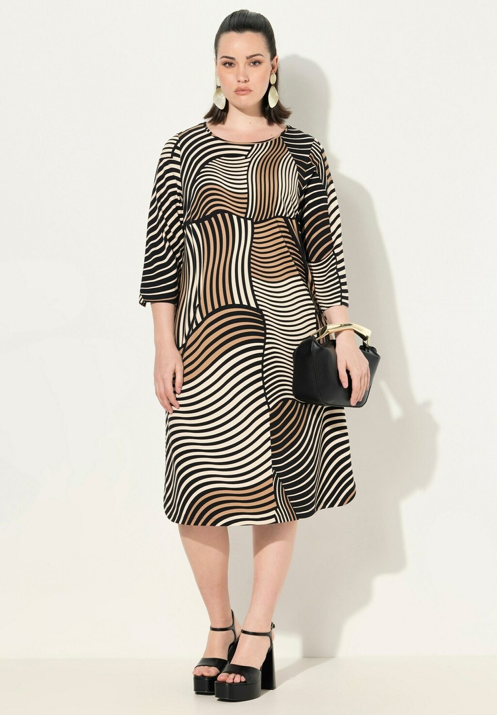 Платье из джерси MIXED WAVE PRINT 3/4 SLEEVE Ulla Popken, черный
