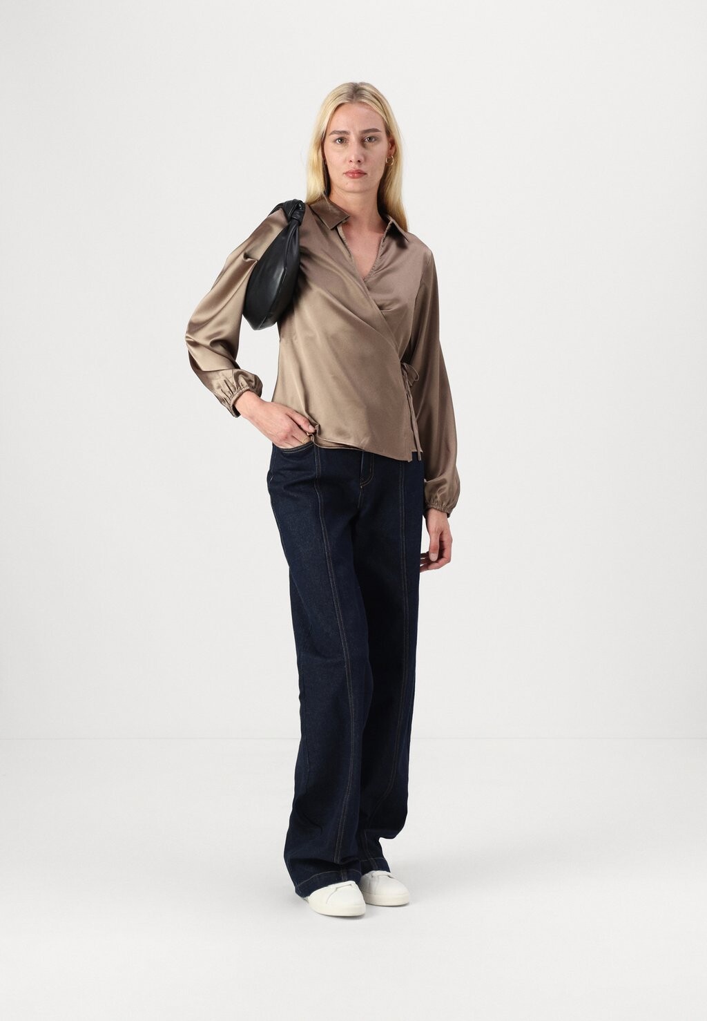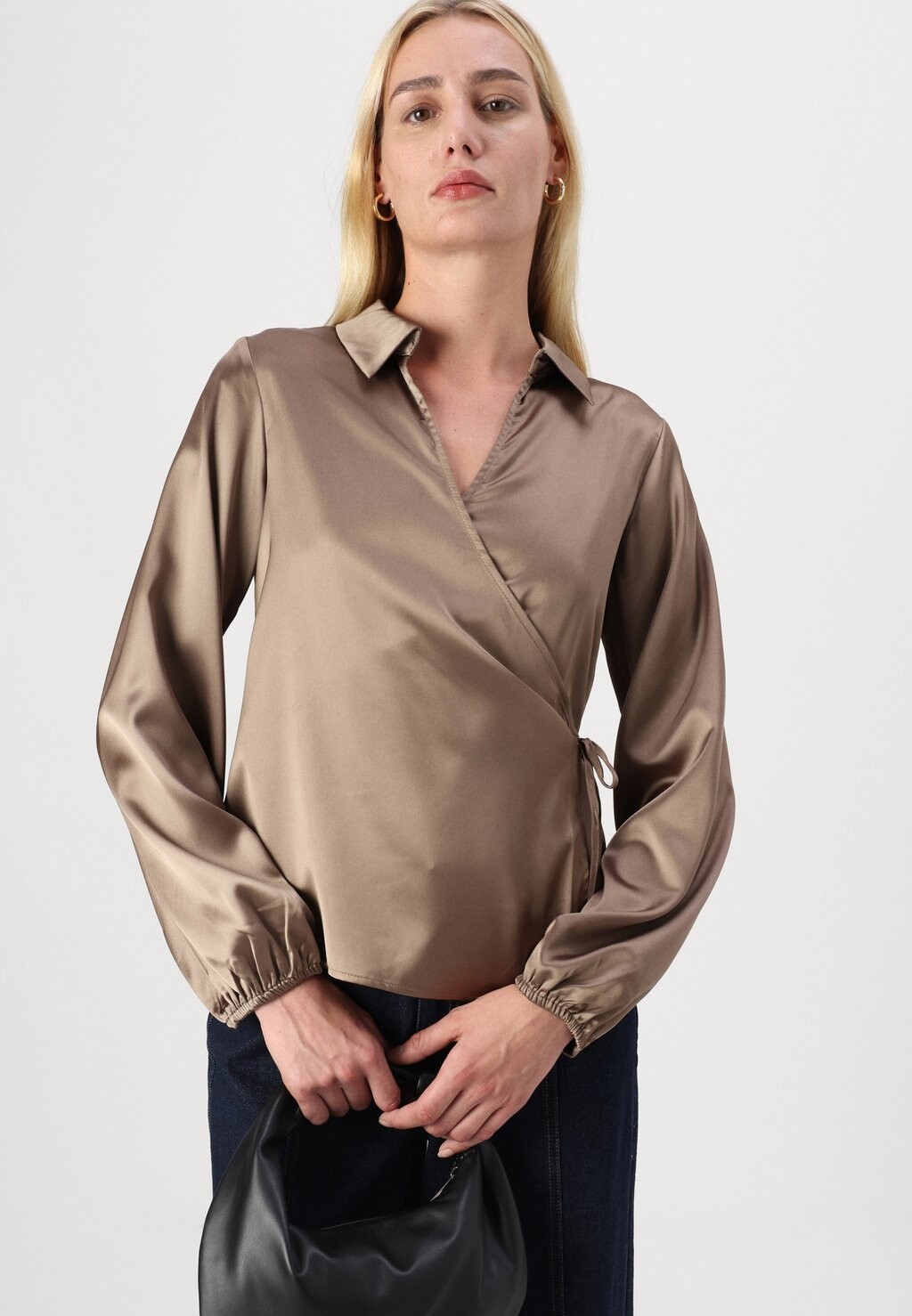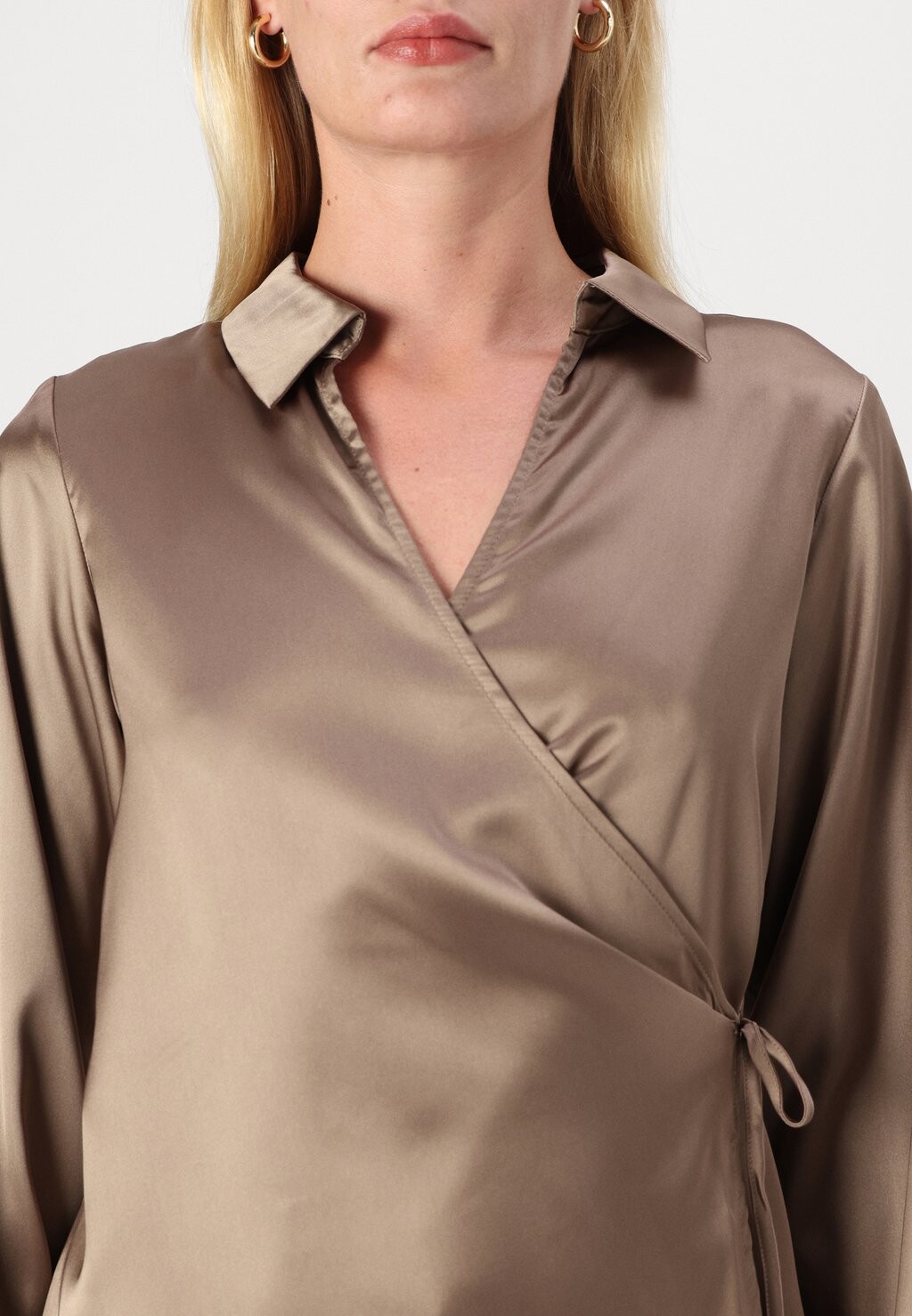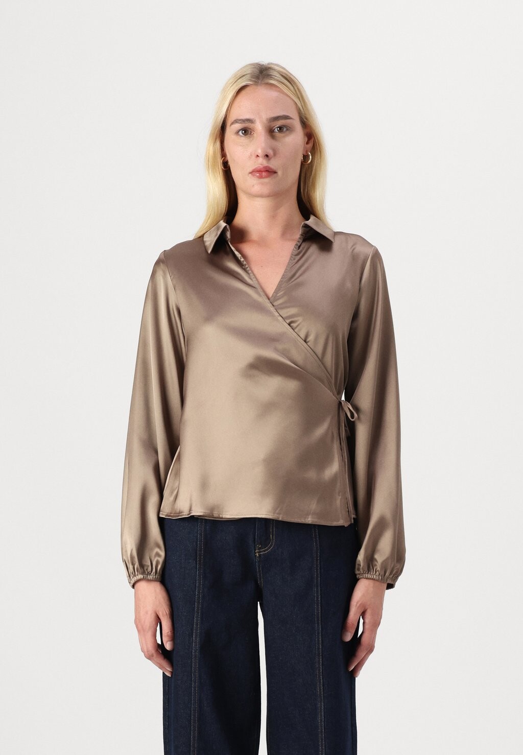 Блуза WRAPPED OVER COLLAR NECK LONG SLEEVES Anna Field Tall, бежевый