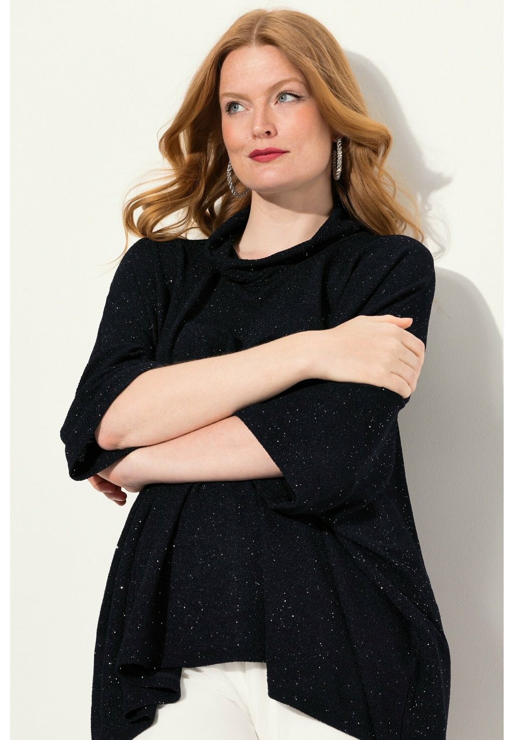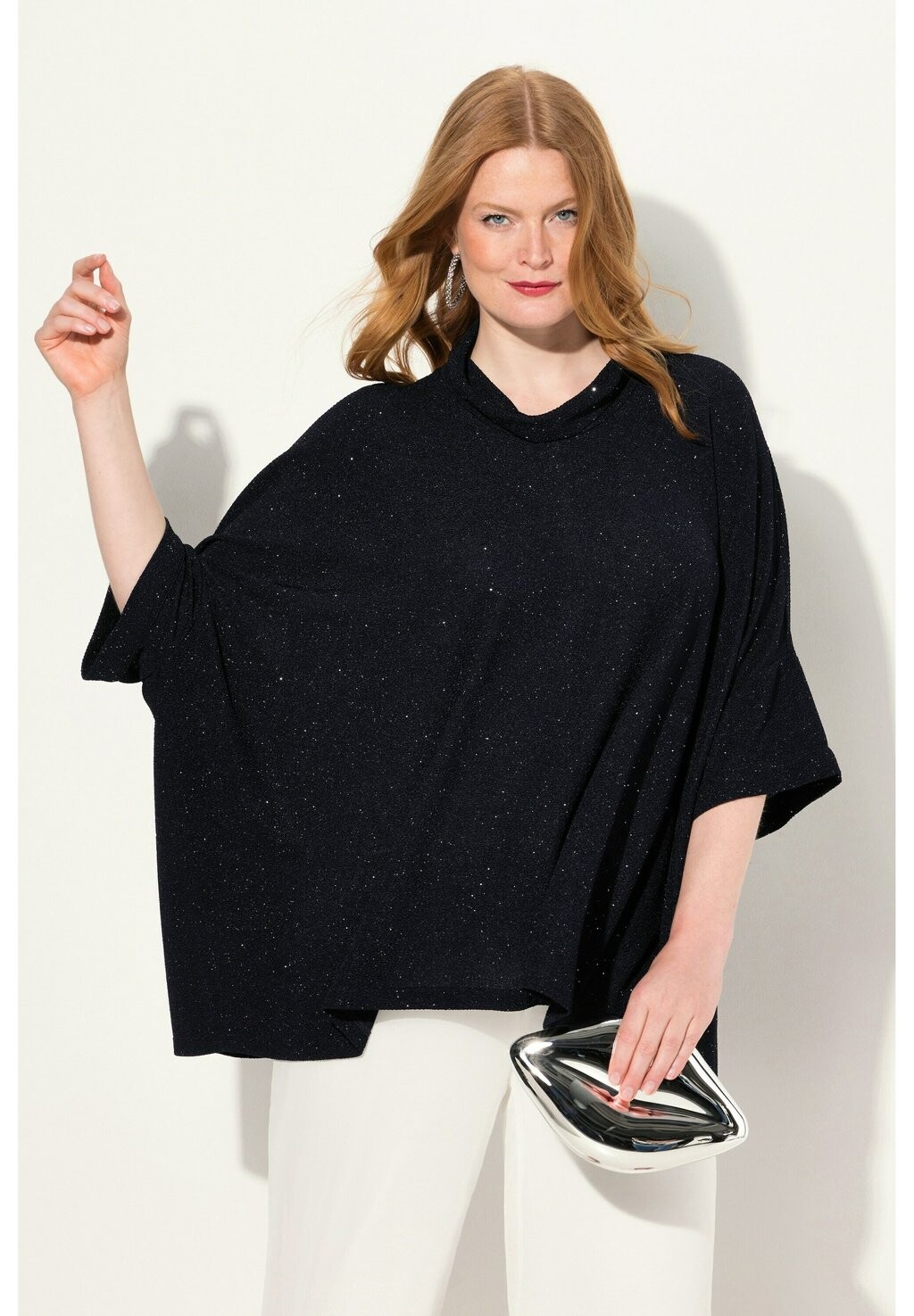 Блуза SPARKLING DRAPED COLLARED Ulla Popken, темно-синий