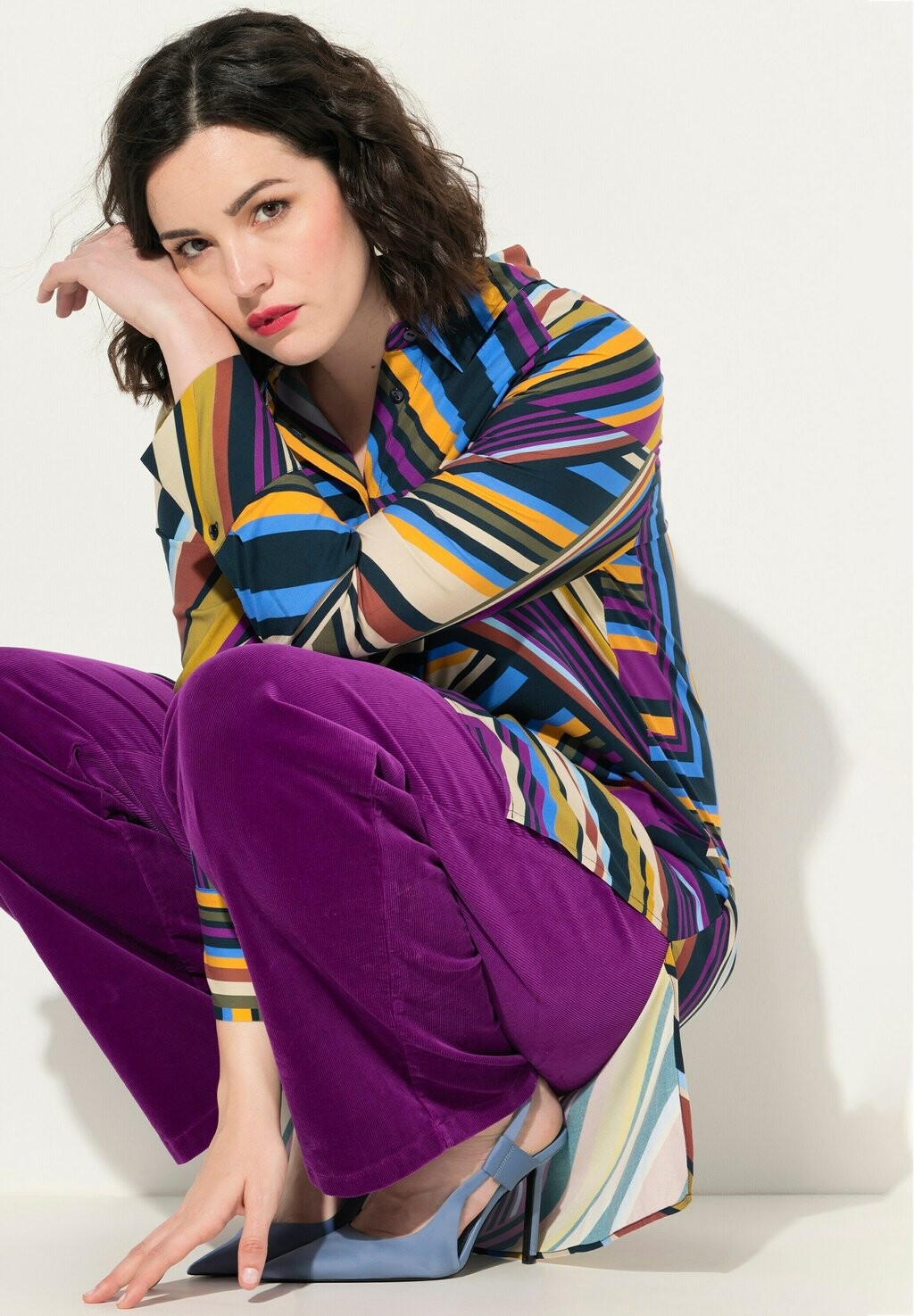 Блузка на пуговицах MIXED STRIPE LONG SLEEVE Ulla Popken, темно-синий