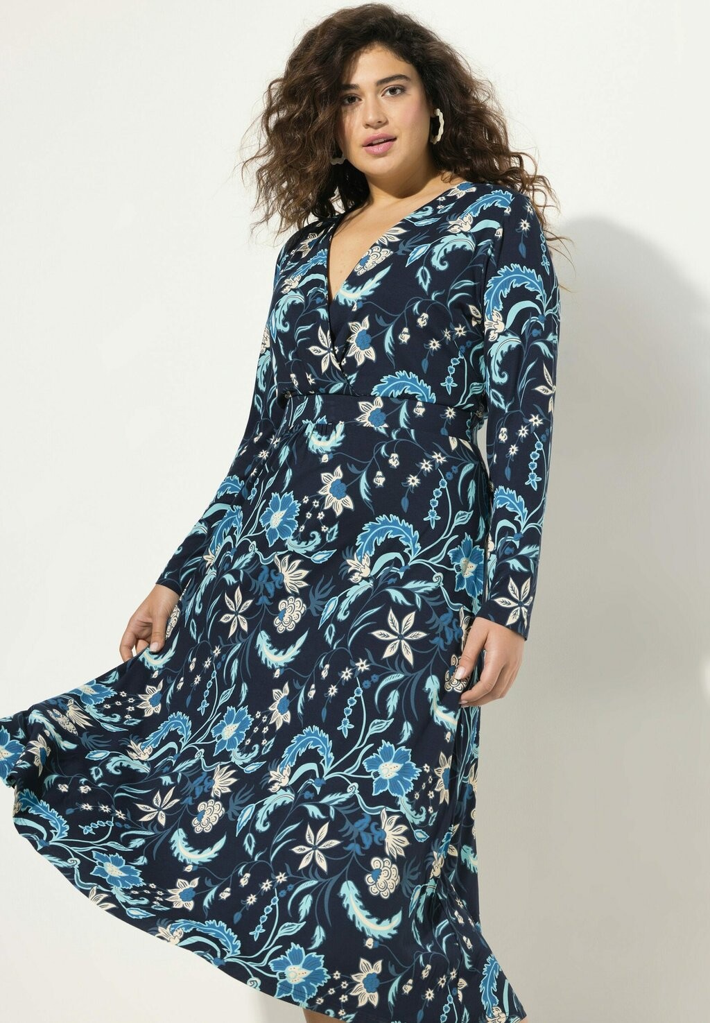 Платье из джерси FLORAL Ulla Popken, темно-синий