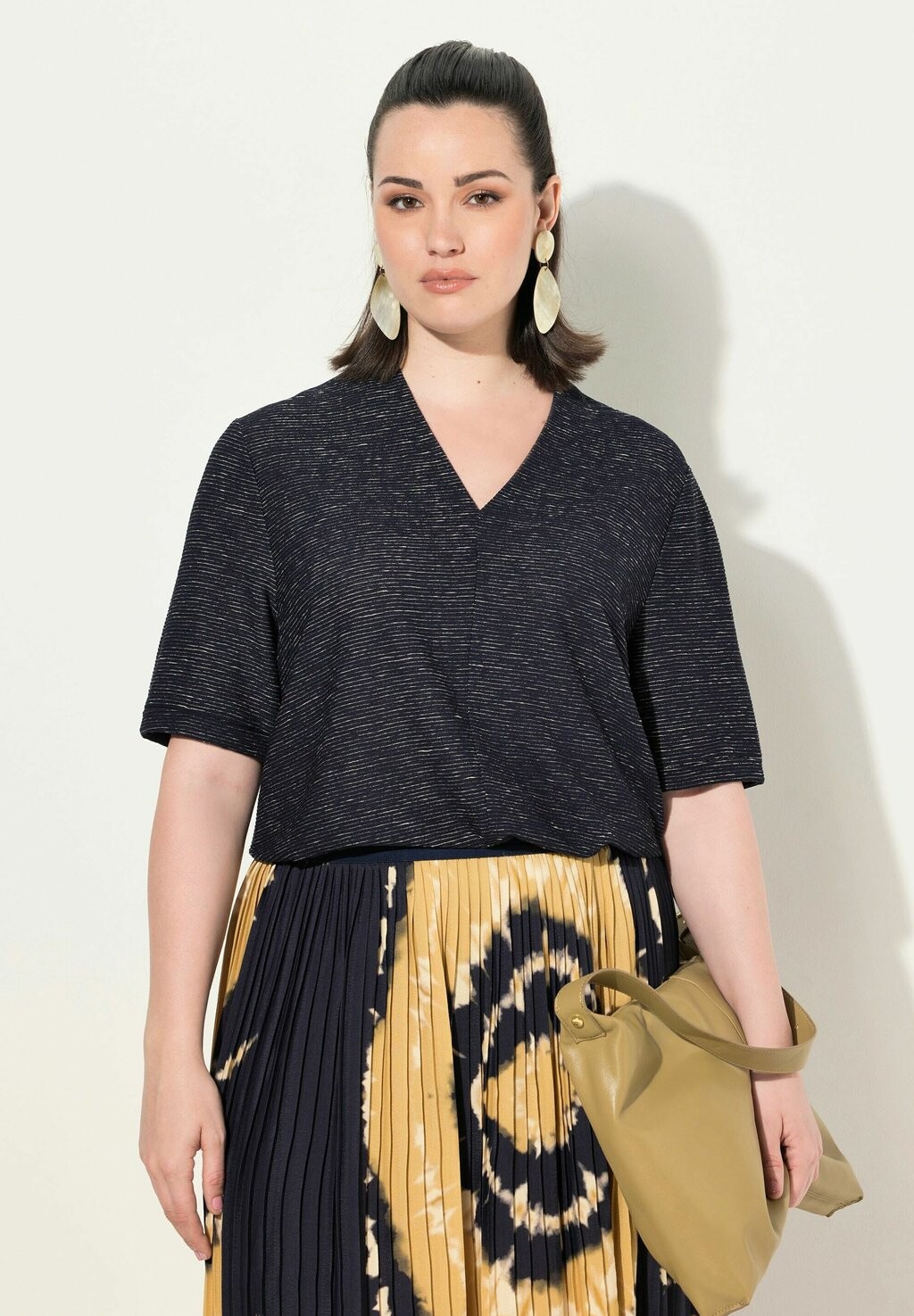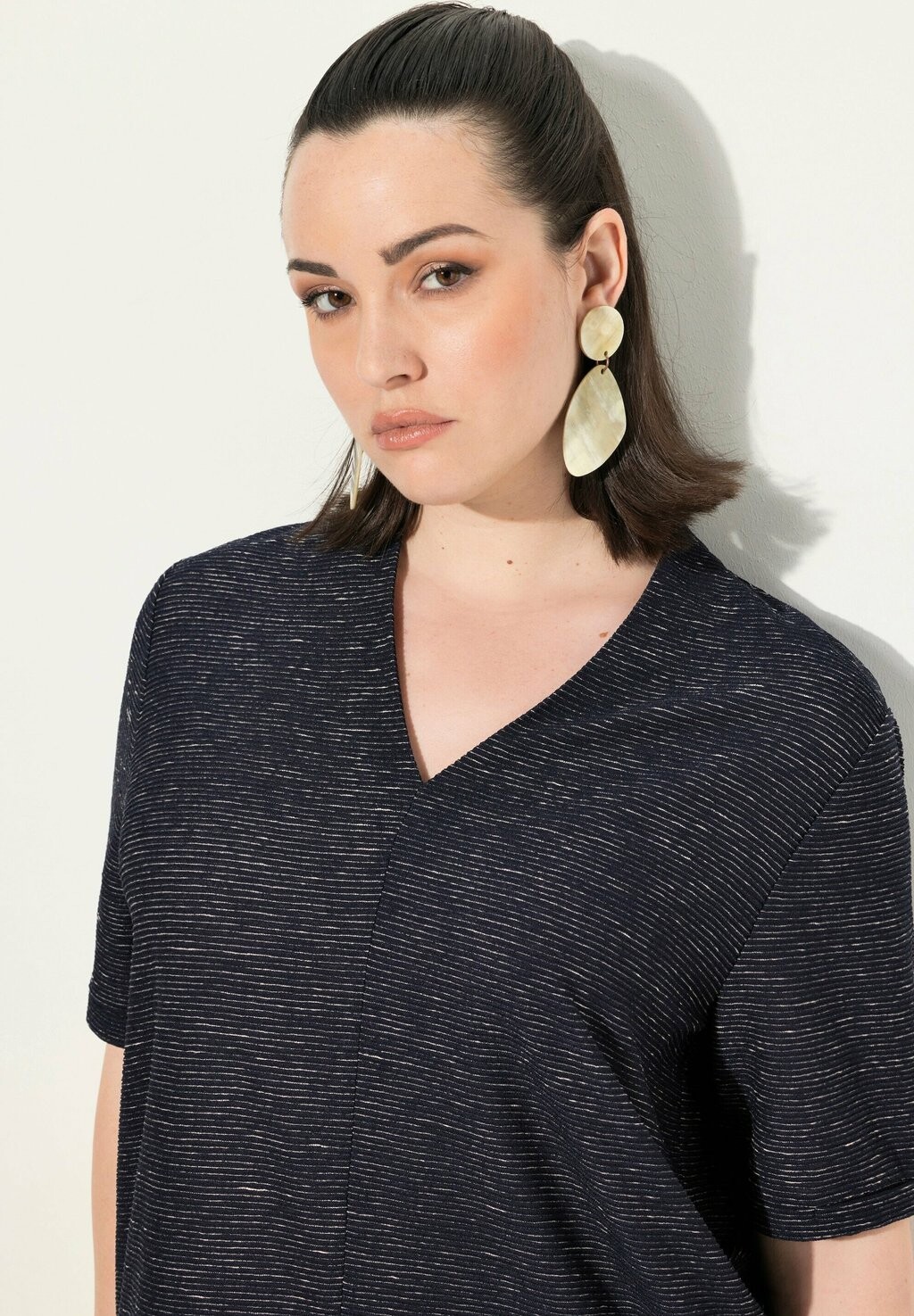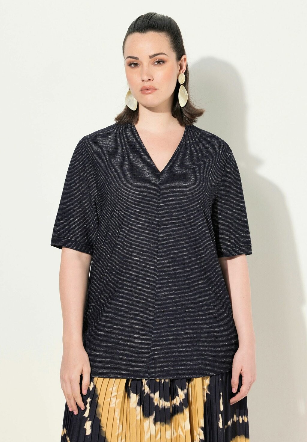 Футболка с принтом TEXTURED SHORT SLEEVE V-NECK Ulla Popken, темно-синий