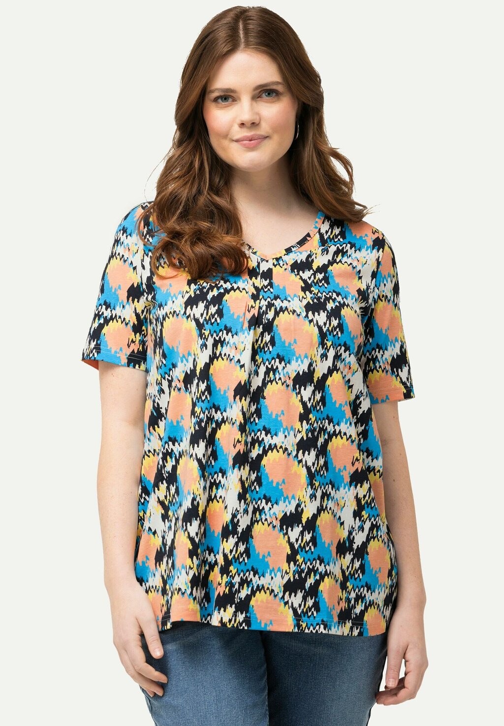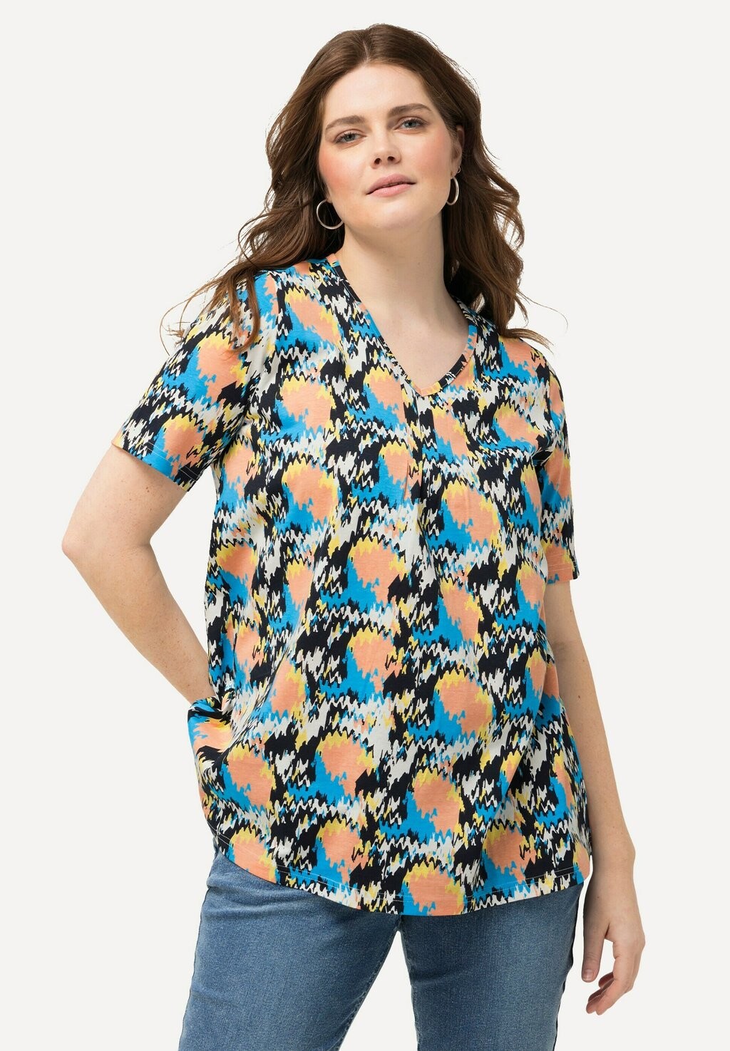 Футболка с принтом ABSTRACT SHORT SLEEVE V-NECK Ulla Popken, темно-синий