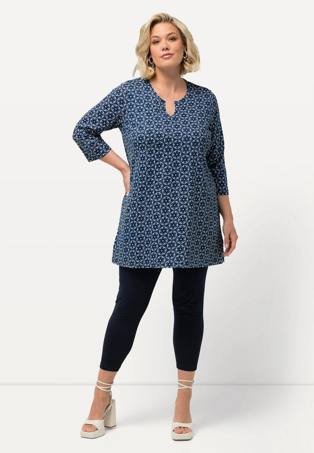 Туника CIRCLE FLORAL SWING Ulla Popken, темно-синий
