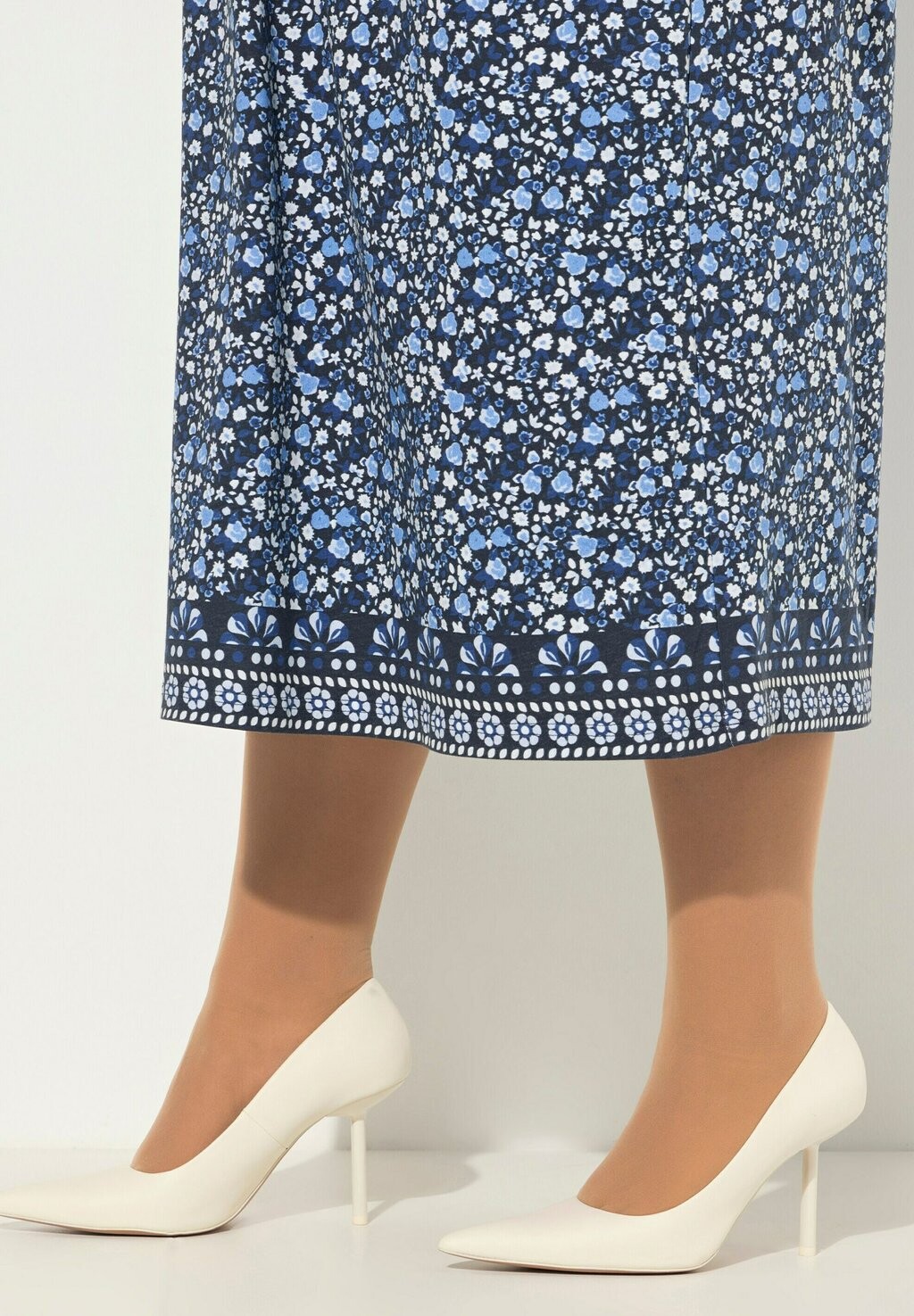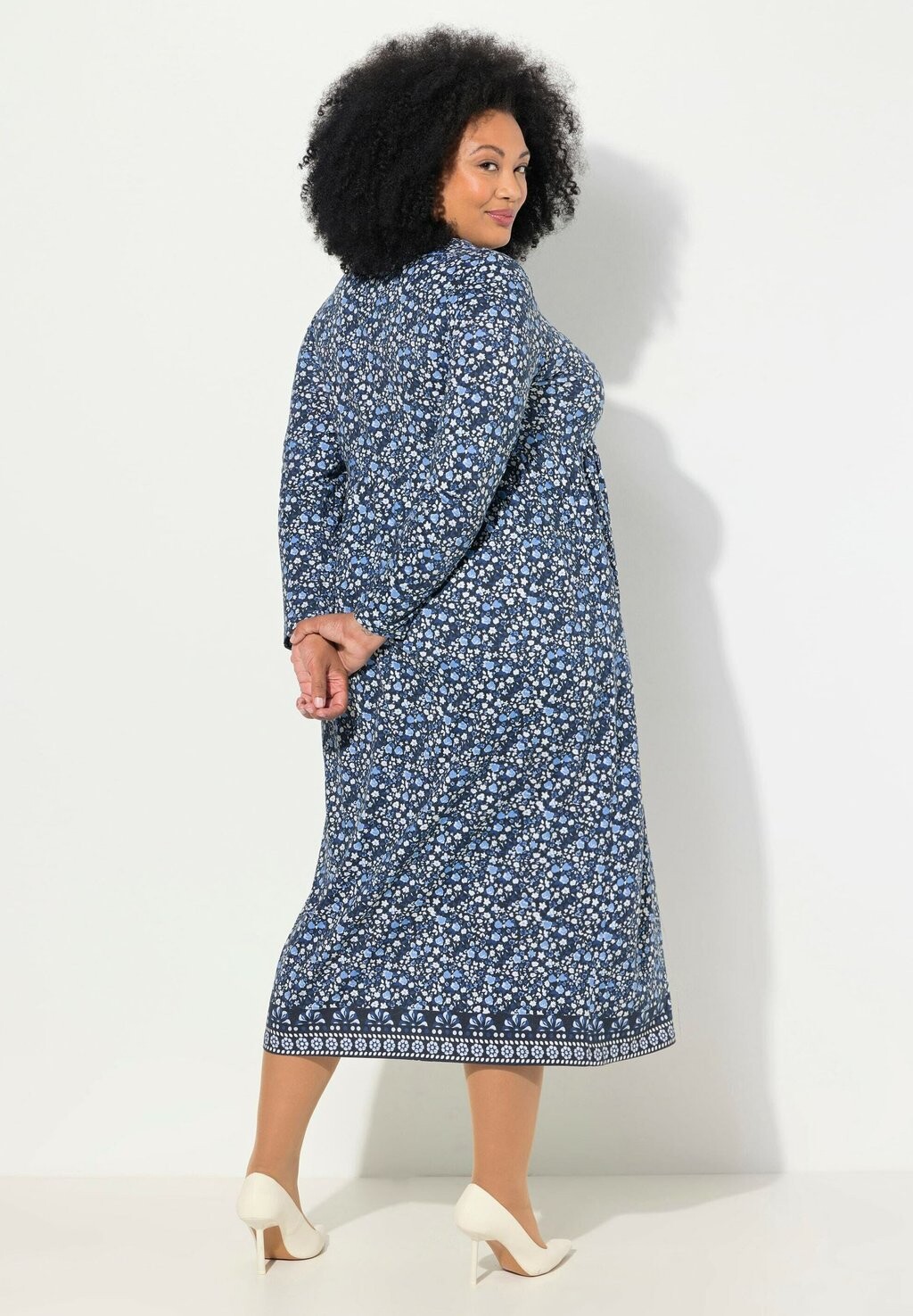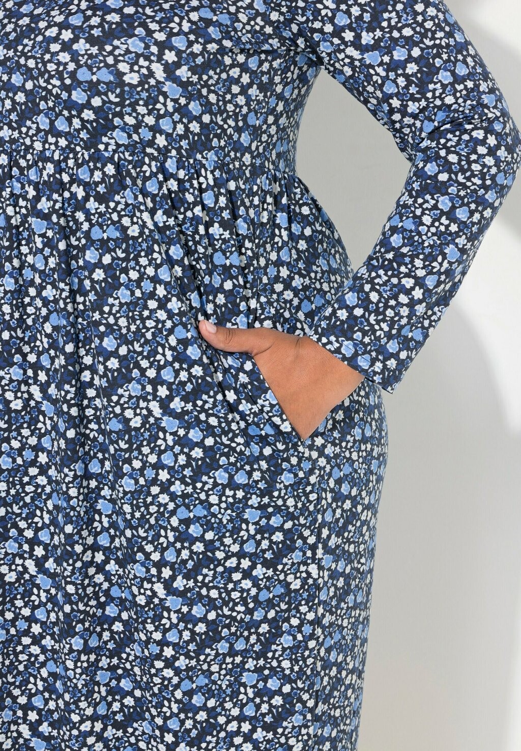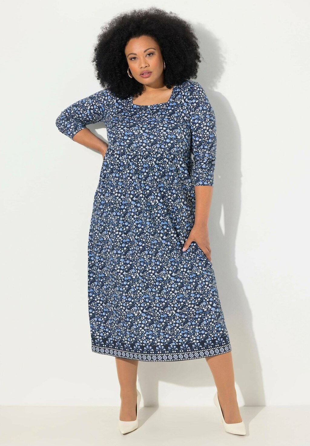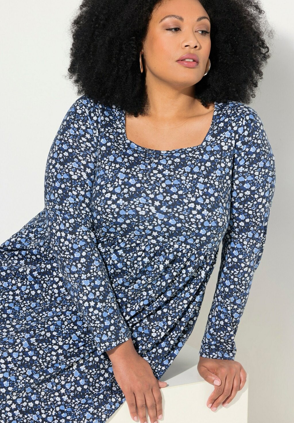 Платье из джерси FLORAL SQUARE NECK LONG SLEEVE Ulla Popken, темно-синий
