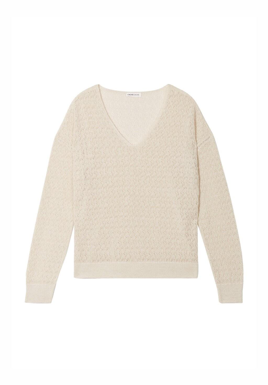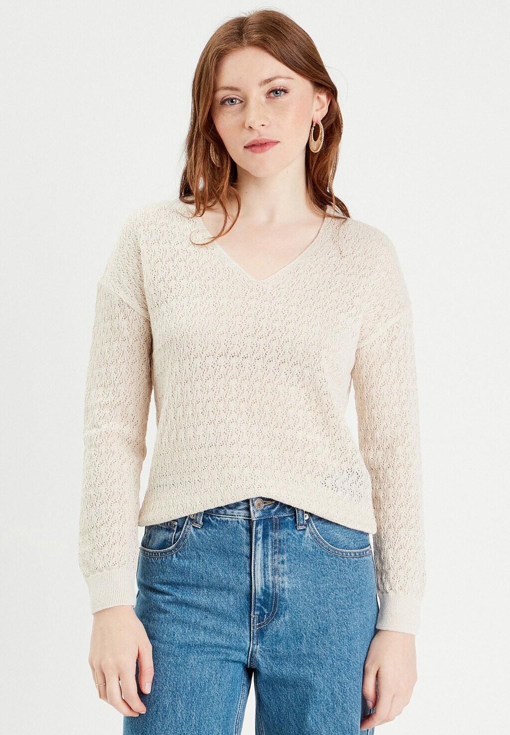 Джемпер MIT LANGEN ÄRMELN UND LOCHMUSTER Cache Cache, кремовый