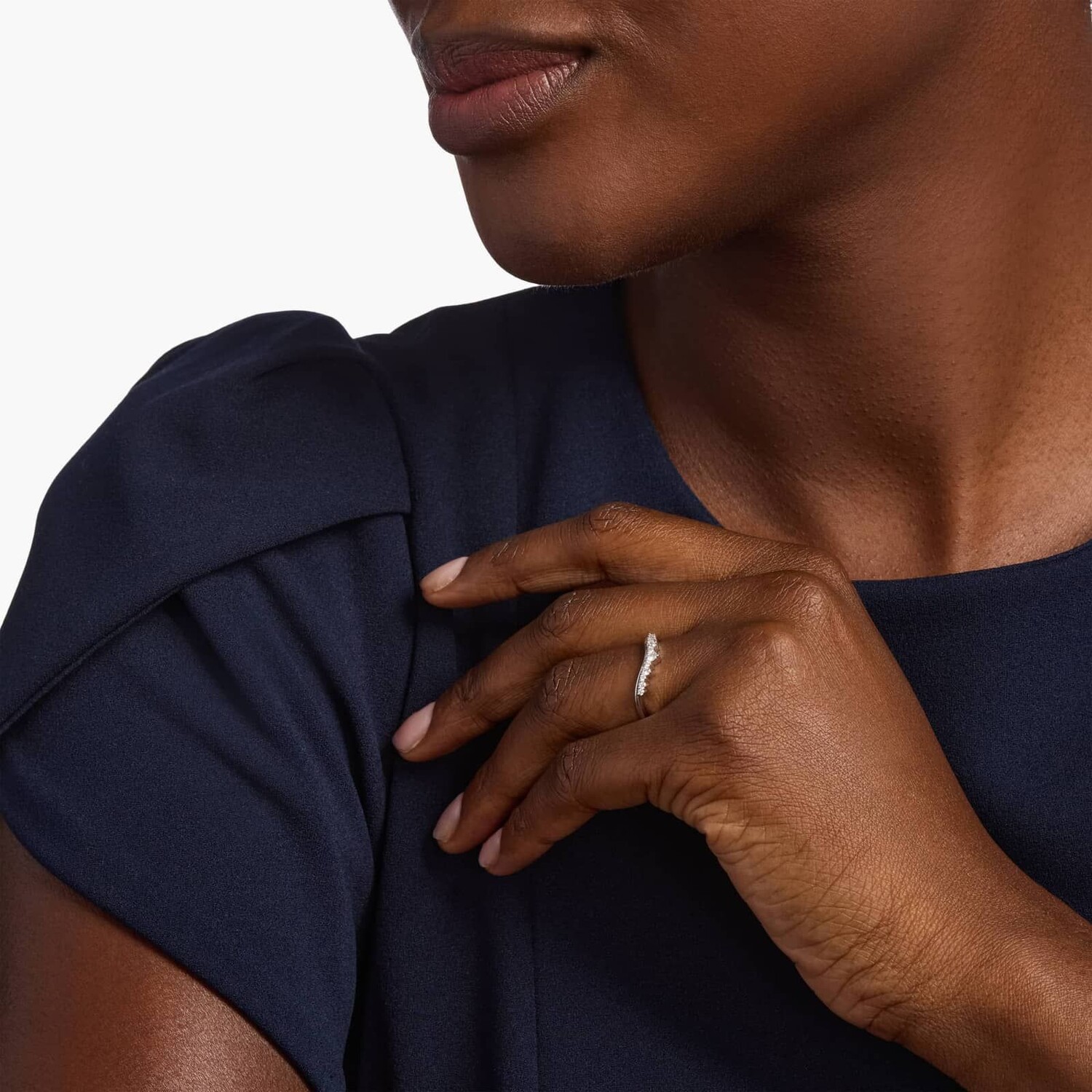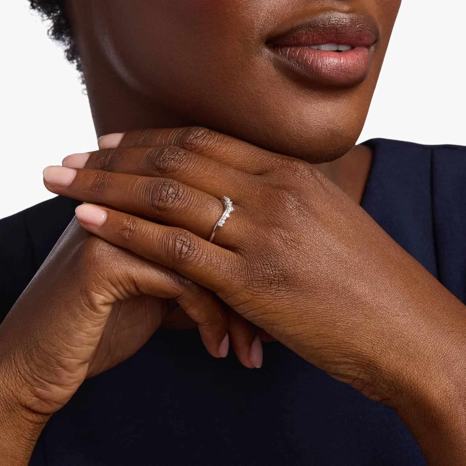 Выбирайте элегантный королевский стиль, надев это изящно изогнутое составное кольцо с мерцающими бриллиантами, установленными в массиве, вдохновленном тиарой. Оно имеет блестящий платиновый дизайн, который дополняет камни.