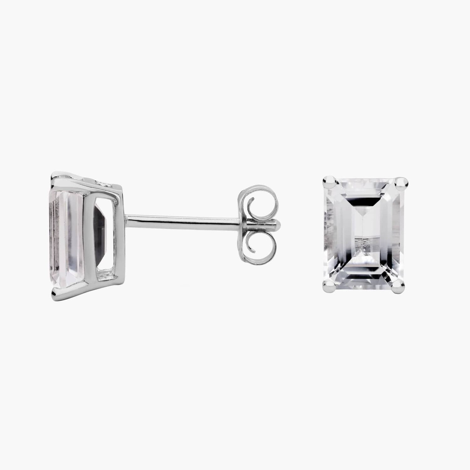 Серьги-гвоздики с белым топазом изумрудной огранки из белого золота 14 карат (7x5 мм) Blue Nile